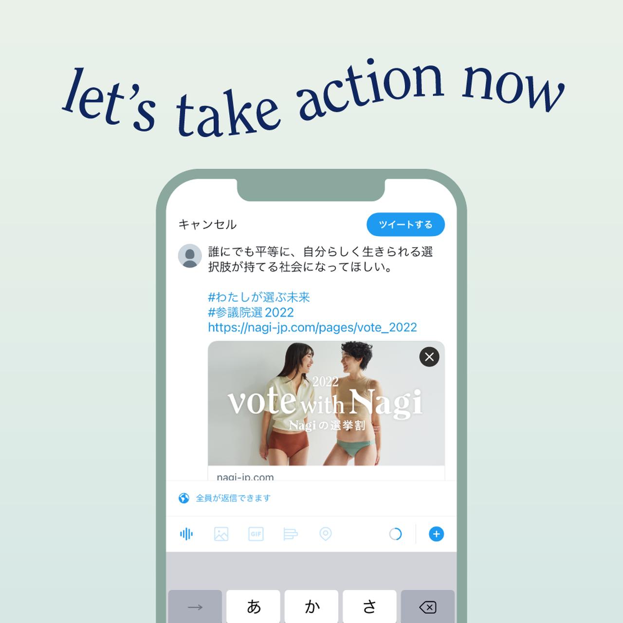 これまで環境月間に合わせたキャンペーンや、福利厚生に吸水ショーツを贈れる法人向けサービスなどさまざまなソーシャルアクションを発信してきたNagiが、参議院議員選挙に合わせて「Vote with Nagi 2022」キャンペーンを開始することに。