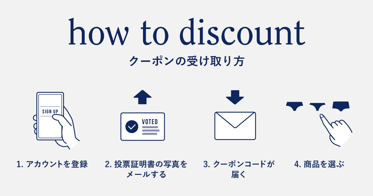 参加方法はNagiのアカウントに登録し、2022年7月の参院選の投票証明書の写真を指定のメールアドレスに送るだけ。そうすることでクーポンコードがメールで届き、お得に吸水ショーツがゲットできる。
