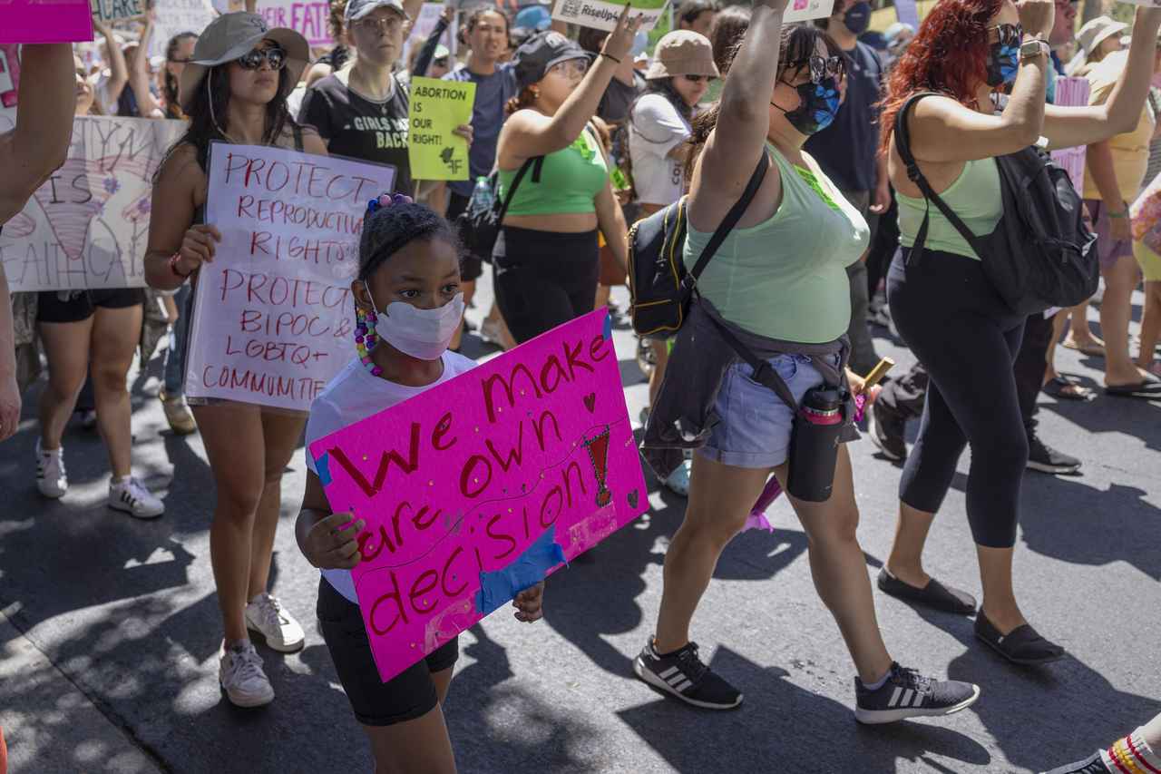 からだの自己決定権(ボディ・オートノミー)のためにデモに参加する少女。アメリカのロサンゼルスで2022年6月26日に撮影。