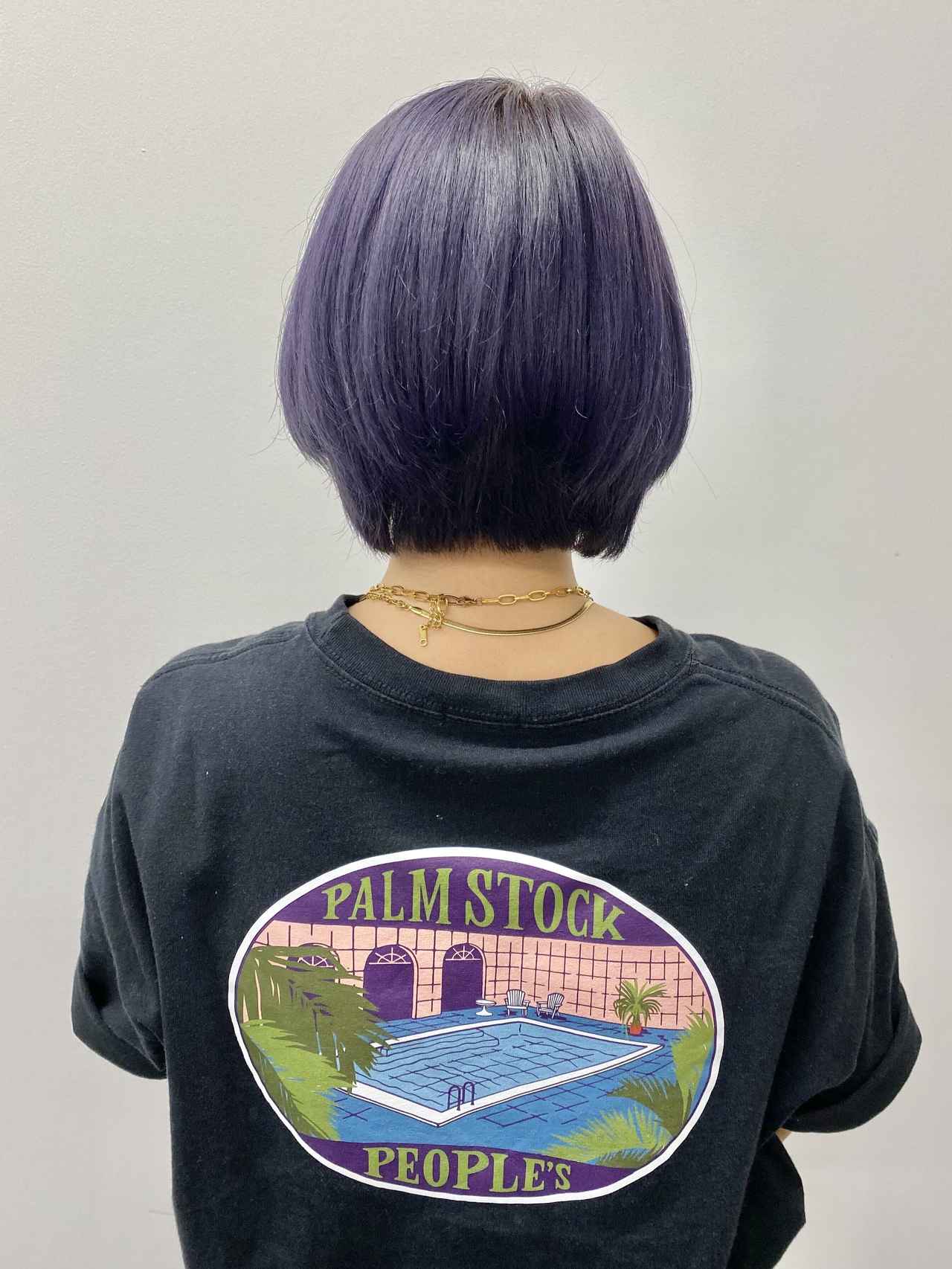 今回使用したのは、黄ばみを抑えてハイトーンカラーの透明感を保つパープルタイプ。これまで合計2回のブリーチをしていて、パープルやブルー、グリーンなどのデザインカラーを経てきたなかで、とくに気になったのが黄ばみ。染めたてはお気に入りのカラーだったのに、それもつかの間。わずか数日で黄みの強い金髪になってしまったこともあるほど、黄ばみやすく、透明感が失われやすいのが悩み。