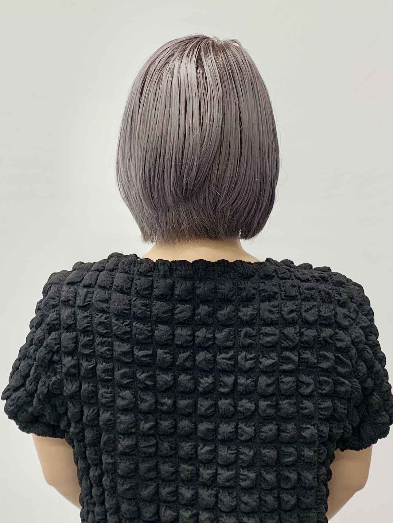 そして2週間が経過。髪質的に色落ちしやすいということもあり、パープル感は薄れてしまったものの、あまりに黄みが目立たなくてびっくり。明るいシルバー系のカラーになり、透明感も抜群。いつものように黄みの強い金髪になることなく、キレイなカラーをキープし続けることができた。