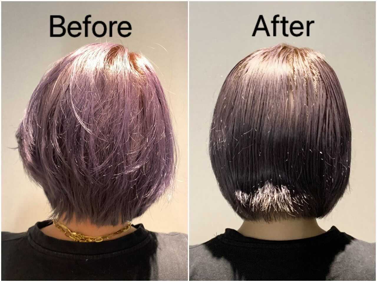 そんな髪に「シャインプロ」を使ってみたところ、1回の使用でも見違えるほどツヤ感がアップ。“天使の輪”が見えるほどのサラツヤ髪に仕上がり、想像以上の変化にびっくり。使用したトリートメントはこれまでと同じなので、「シャインプロ」の追加だけで明らかに仕上がりが変わるという驚きの結果に。
