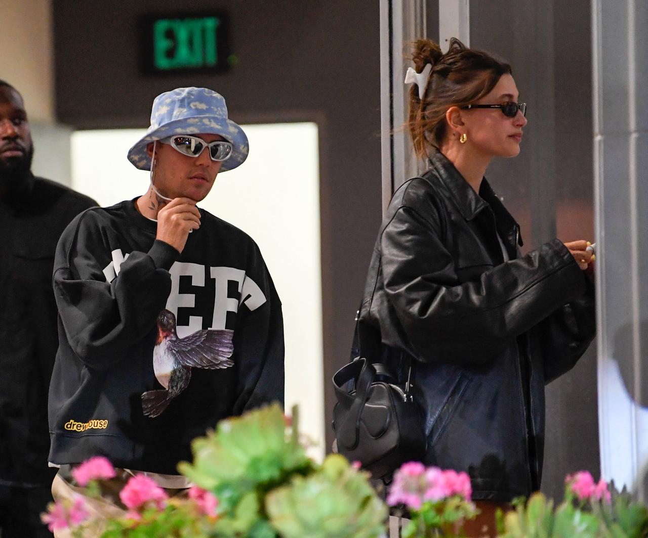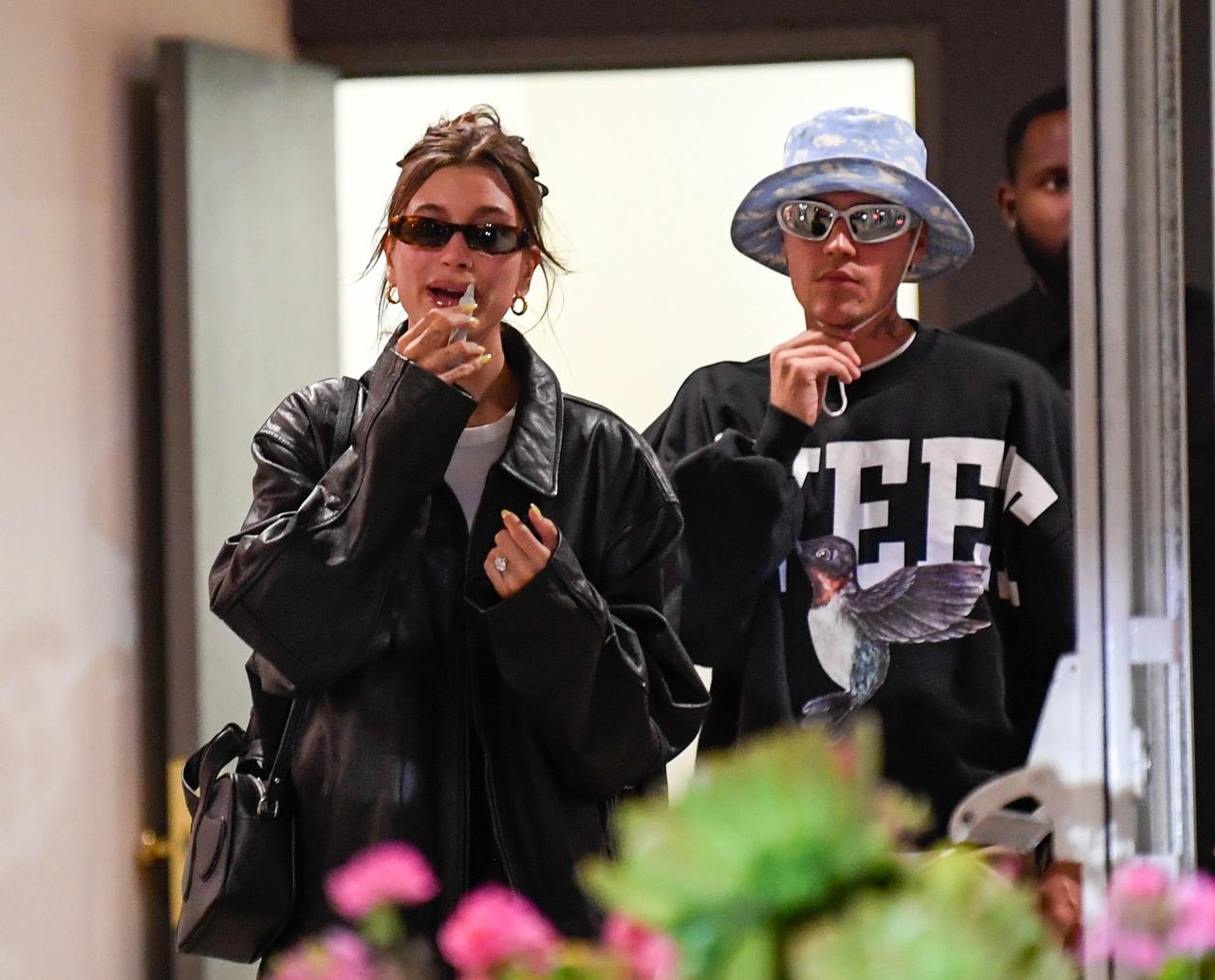 シンガーのジャスティン・ビーバーと妻でモデルのヘイリー・ビーバーが行きつけの寿司屋から出てくるところを激写。(フロントロウ編集部)
