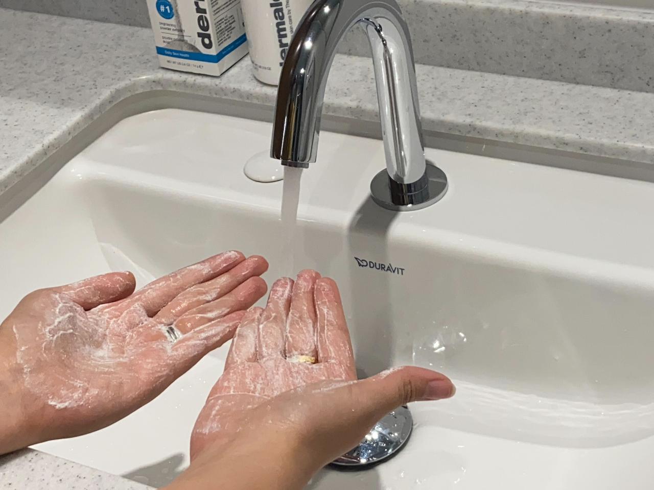 しかし、顔に塗ってみても意外と柔らかい感触で、「おっ、これは気持ちいいかも!」と思いながら、ライスベースのスクラブを肌の上でやさしくなじませ、水で洗い流してみる。