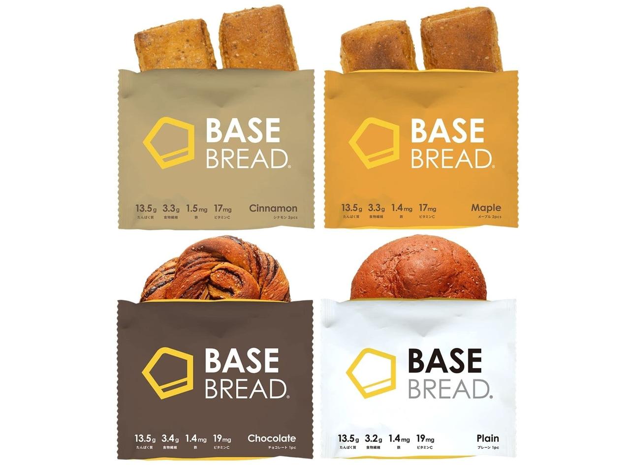 BASE BREADは、1食2袋で1日に必要な栄養素の3分の1をすべてとれるパーフェクトフード※。たんぱく質や食物繊維、豊富なビタミン・ミネラルなど1日に必要な約30種類の栄養素が含まれている。4種16袋セットは、プレーン、チョコレート、メープル、シナモンがそれぞれ4袋ずつ入っているので、気分に合わせてさまざまなアレンジが楽しめる。