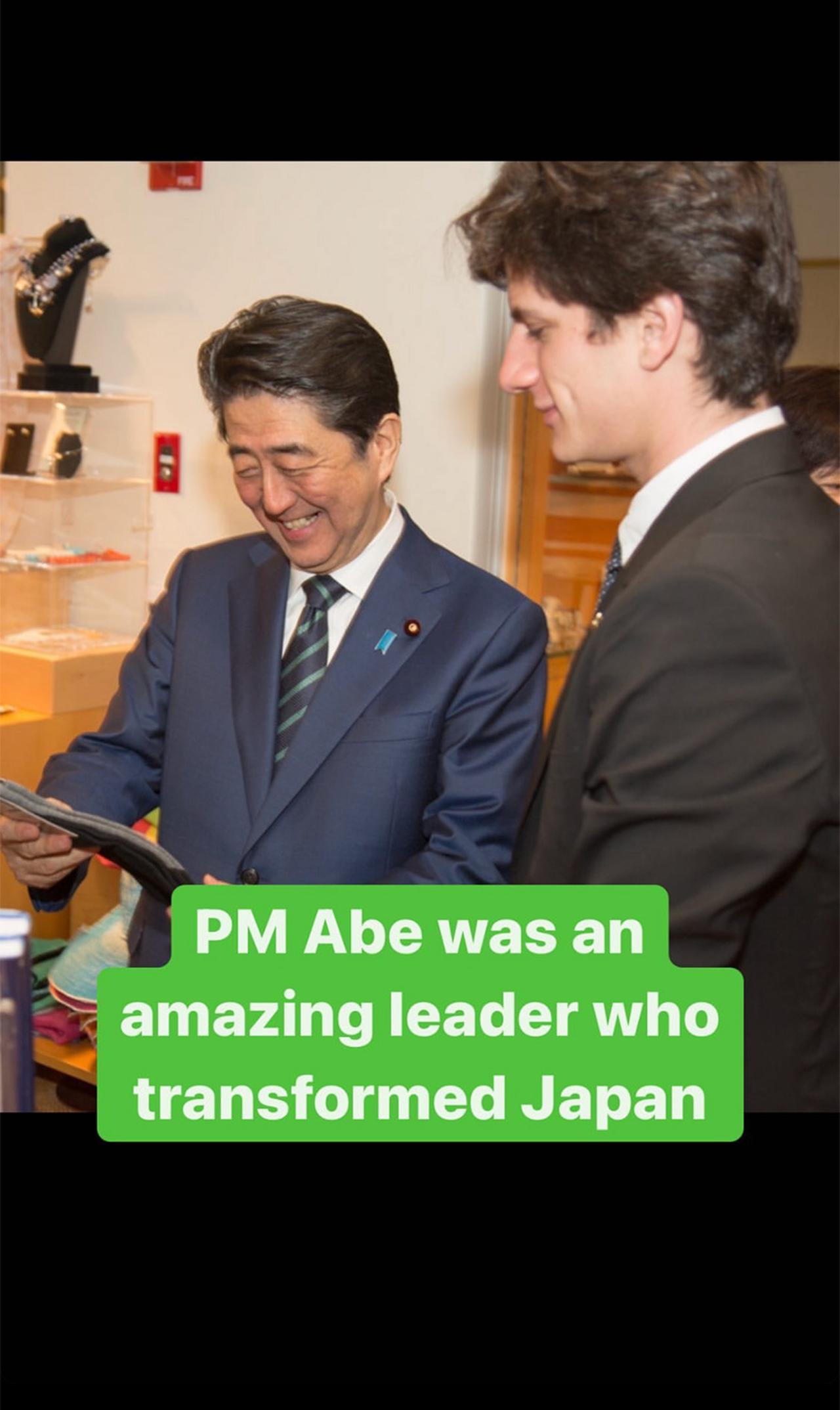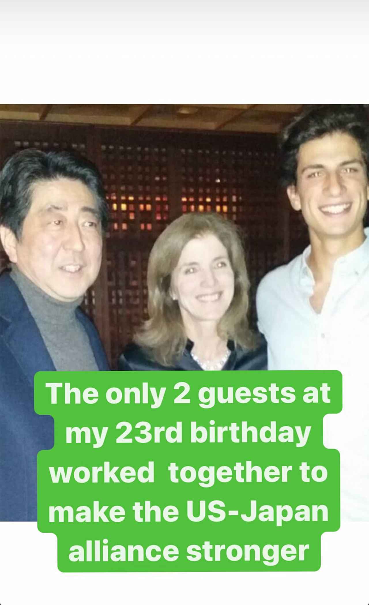 また、ジャックはインスタグラムのストーリーに思い出の写真を複数投稿し、自身の23歳の誕生日を祝ってくれたのが、母のケネディ元駐日大使と安倍元首相の2人だけであったことを明かした。