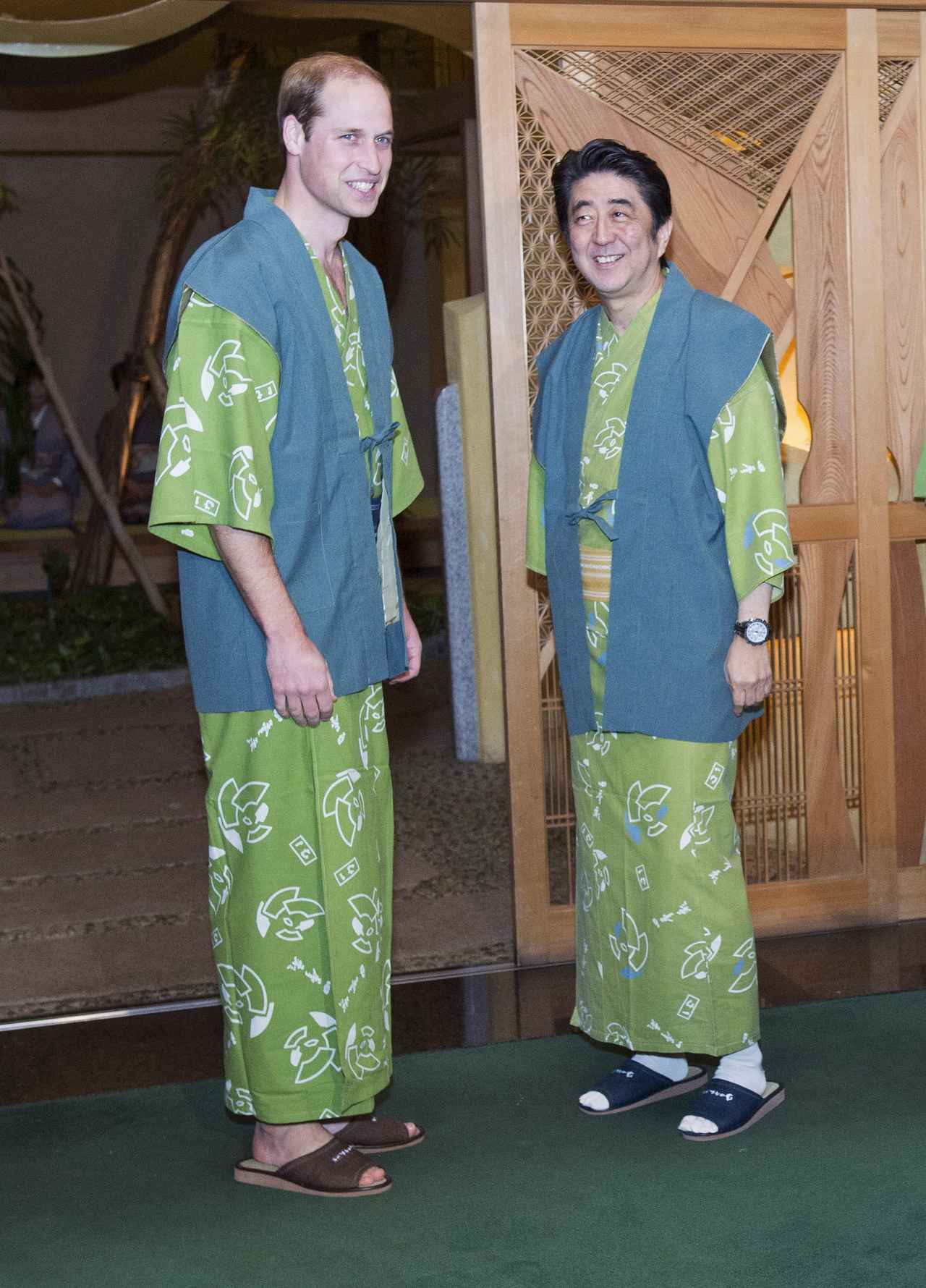2015年に訪日したウィリアム王子は、当時、日本の首相だった安倍氏とともに東日本大震災の被害にあった福島県を訪問。同県本宮市内にある運動施設を安倍元首相と一緒に訪れ、子どもたちと交流したほか、滞在先の同県郡山市内の老舗旅館で安倍元首相からおもてなしを受け、おそろいの浴衣姿で和食を堪能した。