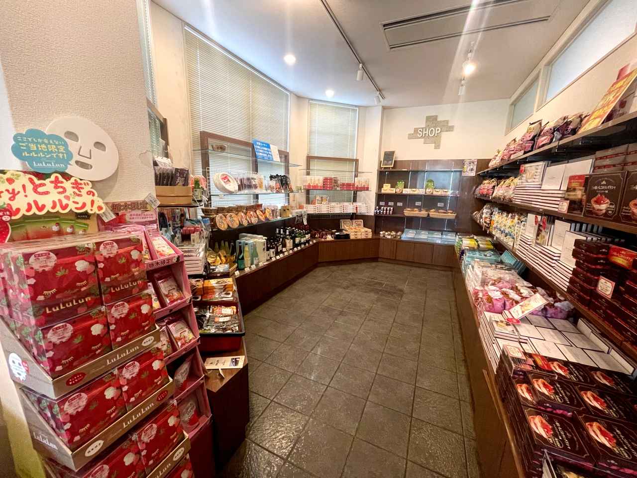 那須塩原のおみやげが買える売店。小腹が空いたときの駄菓子コーナーもあり。