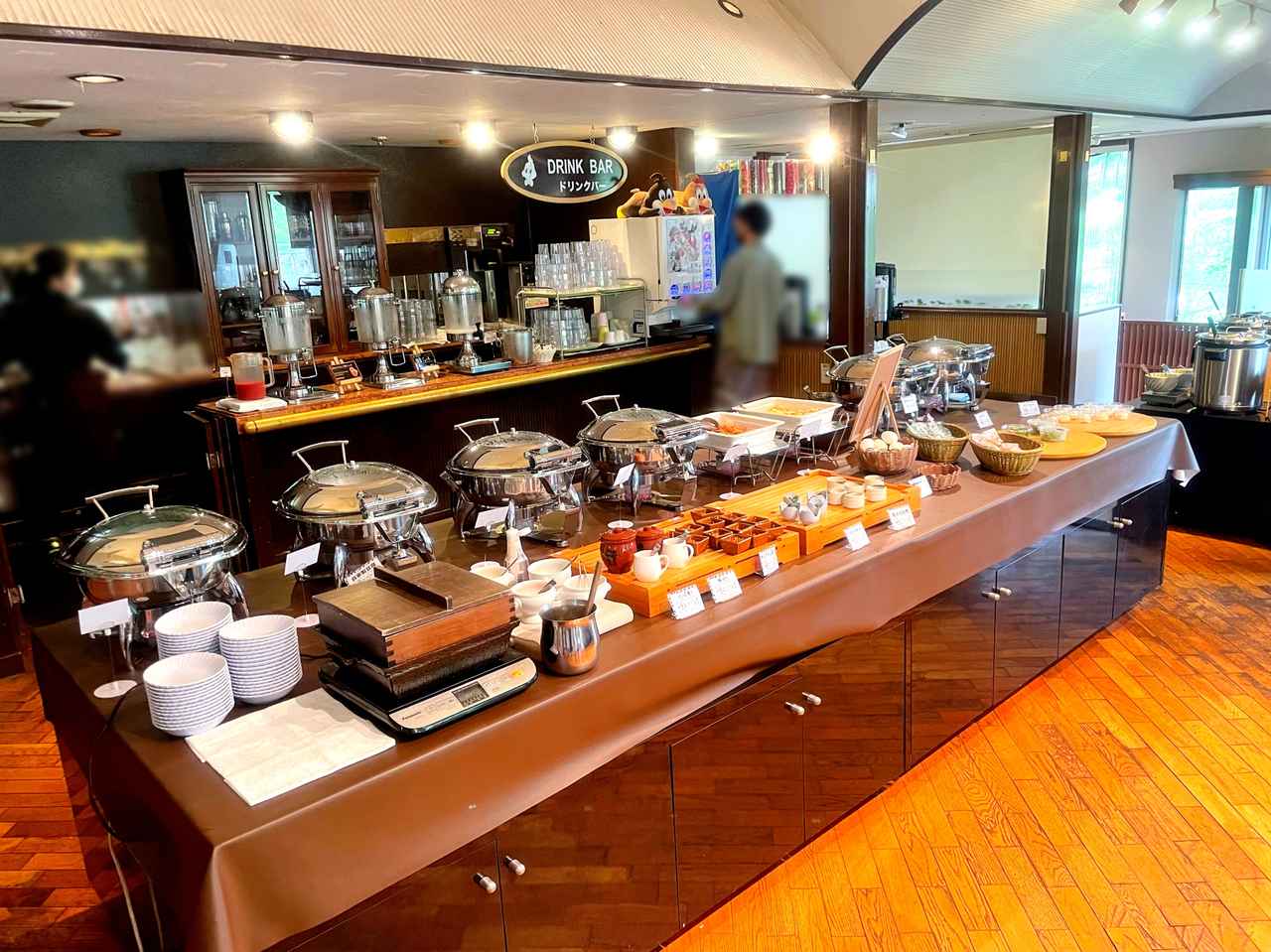 朝食は、ウッドデッキが改装されたばかりの洋食レストラン「ル・ロージェ」にて。洋食、和食が揃ったバイキング形式となっており、パンケーキやサクサクのクロワッサンが美味しい。室内でも食事は可能だけれど、ウッドデッキからは那須連山や那須ハイランドパークが見渡せるので、外でのんびり朝食をとるのがおすすめ。