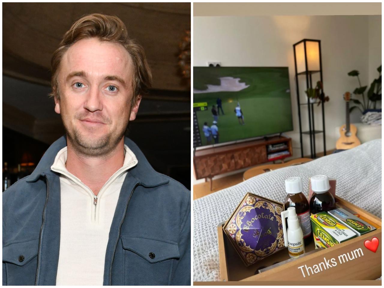 映画『ハリー・ポッター』シリーズのドラコ・マルフォイ役でおなじみの俳優トム・フェルトンが、体調を崩したときに見舞いに来た母から「ハリポタグッズ」を渡される。(フロントロウ編集部)