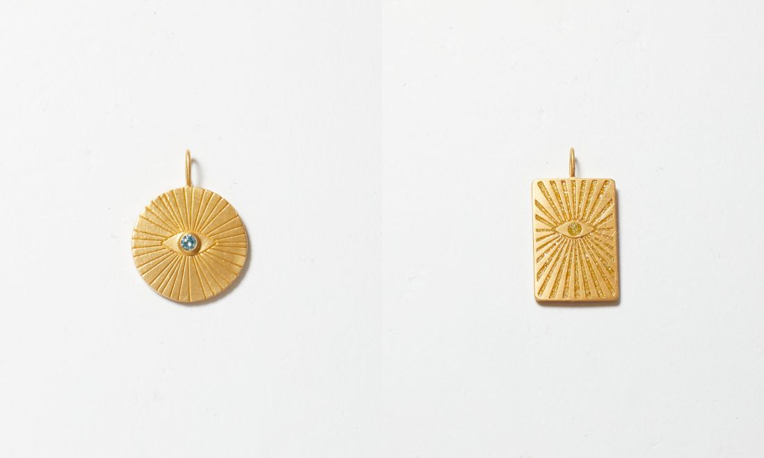 鋭い眼差しで邪視を睨み返し、人々を守る魔除けのシンボル、”evil eye”を象った人気のモチーフ。目の中心に、カラーラボグロウンダイヤモンドをあしらったデザイン。