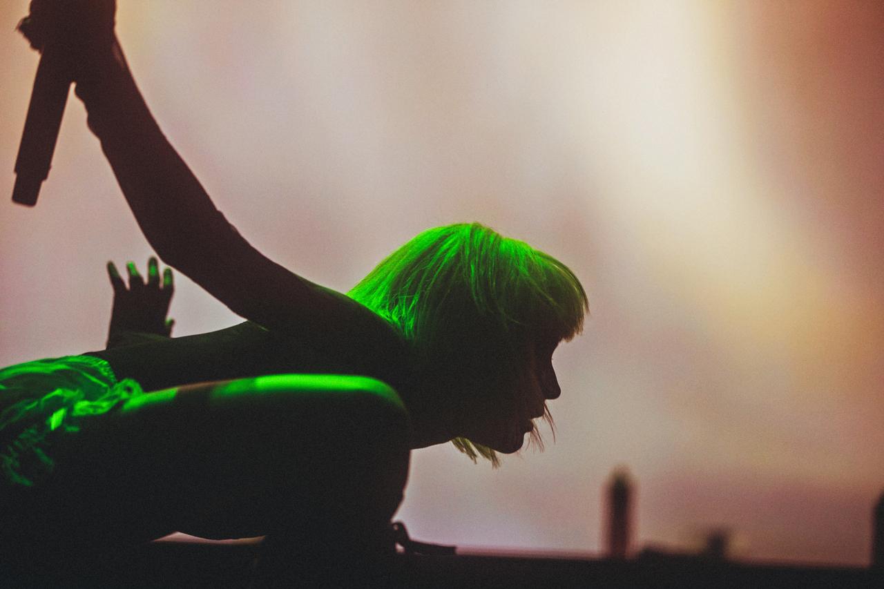 その後も、「Graveyard」、「Colors」、「Hurricane」とこれまでのキャリアを振り返るようなセットを披露していくホールジー。「Hurricane」のパフォーマンスではステージがブラックライトで照らされたのだが、この日ホールジーが着けていたウィッグはブラックライトで光るというものだったようで、暗闇のなかでライトグリーンの髪に光が灯っていたほか、オレンジのアイメイクも同じくブラックライトで光る仕様のもの。シアトリカルなステージへのこだわりは、ヘアメイクにまで徹底されていた。