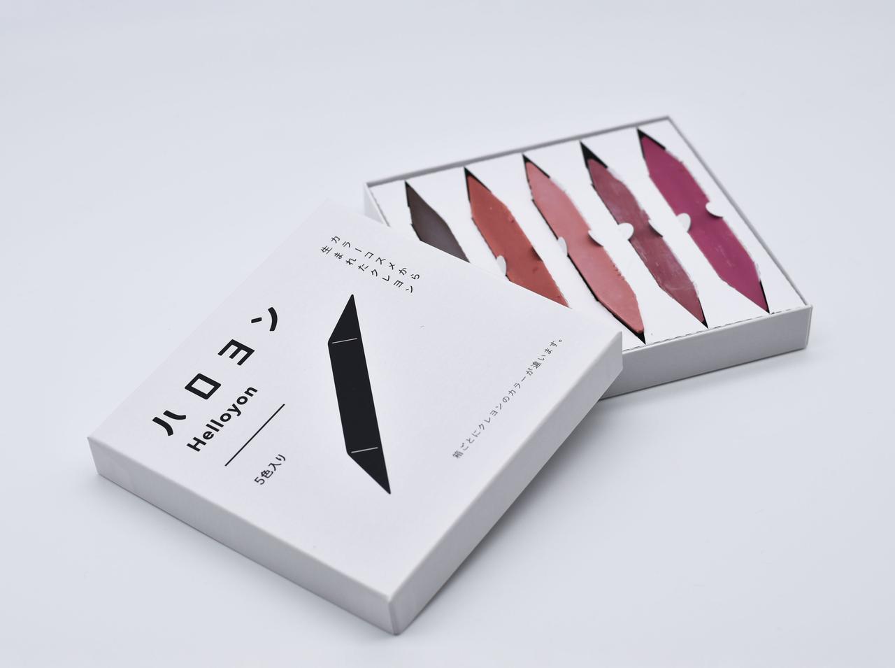 この取り組みは、「COSME no IPPO (コスメノイッポ)」のディレクター大澤美保氏が、美容業界のゴミゼロを目指す活動として2021年秋にスタート。カラーコスメをアップサイクルしてつくられるクレヨン「ハロヨン」は、収集したカラーコスメが原材料であるため、ラメが入っているなど、既存のクレヨンにはない色を楽しめること、箱ごとに異なる色が入っていることが魅力。