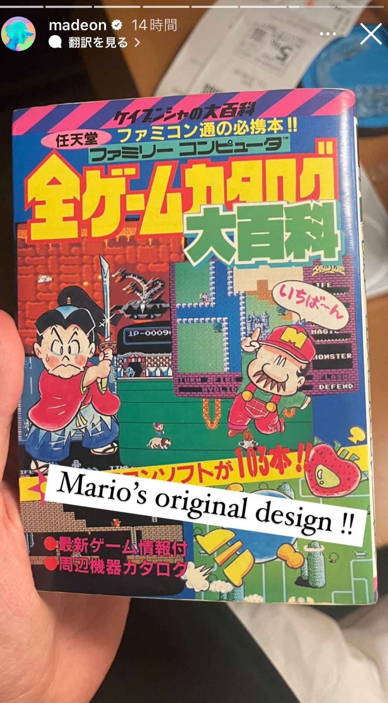 加えて、海外でも高い人気を誇る任天堂のゲーム『スーパーマリオ』シリーズの情報も掲載された、『ファミリーコンピュータ全ゲームカタログ大百科』もマデオンの目に留まったよう。厳密には表紙に描かれているのはゲームに登場するデザインのマリオではないと思われるものの、マデオンはこの写真に「マリオのオリジナルデザインだよ!」とキャプションを添えている。