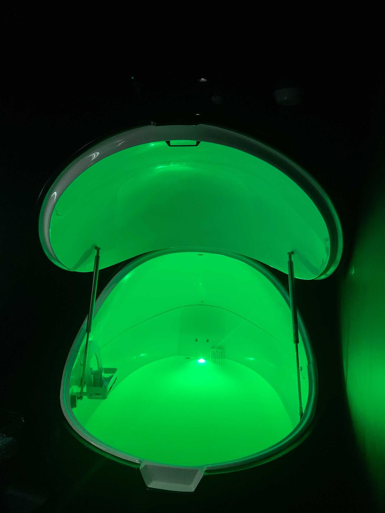 「アイソレーションタンク」では、さまざまなカラーに移り変わる光が楽しめるほか、ライトを切って暗闇にすることで音と光の両方を遮断することも可能。ライトを切ってみると視覚と聴覚、重力のすべてから解放されて、意識だけに集中することができた。