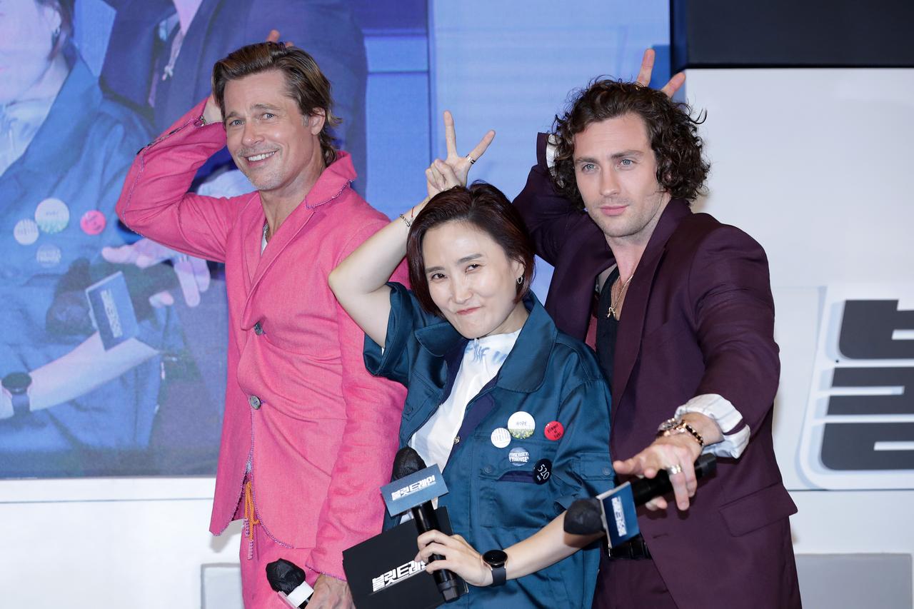 『ブレット・トレイン』のデヴィッド・リーチ監督、ブラッド・ピット、アーロン・テイラー=ジョンソンが来日中。初来日のアーロンははしゃぎまくり。(フロントロウ編集部)