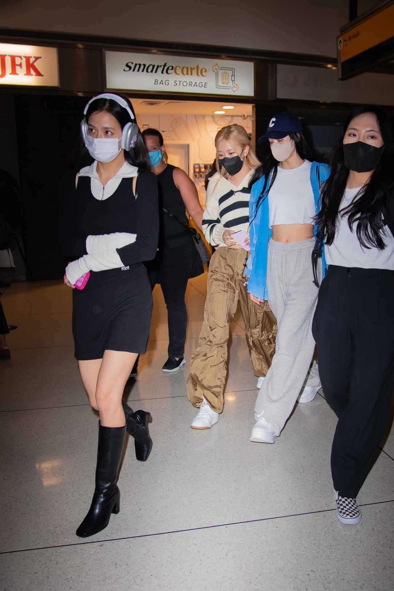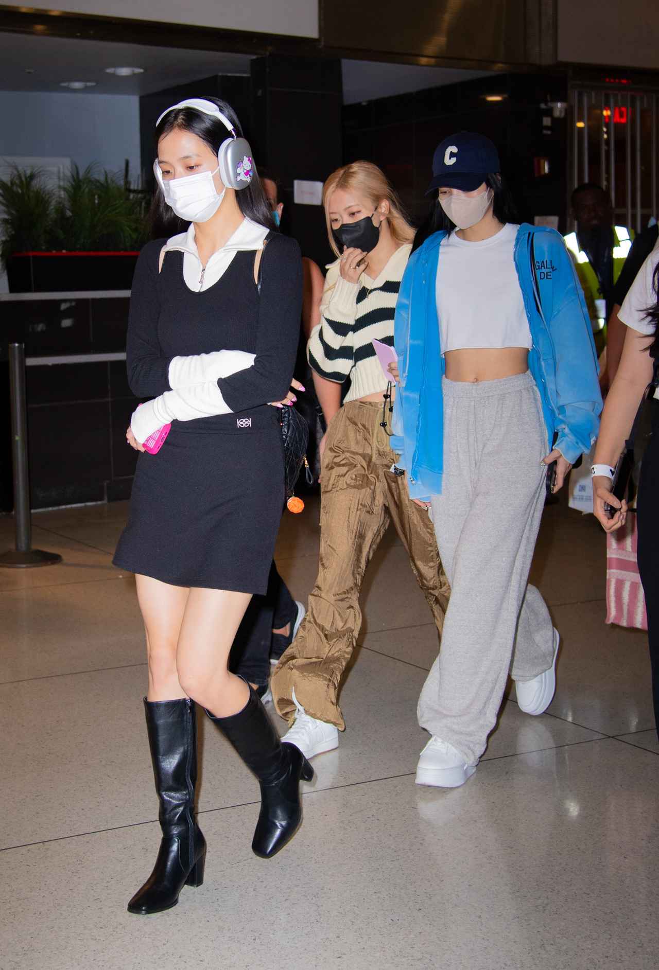 空港到着時のジス、ロゼ、リサの3人。写真には写っていないが、ジェニーも一緒だった。