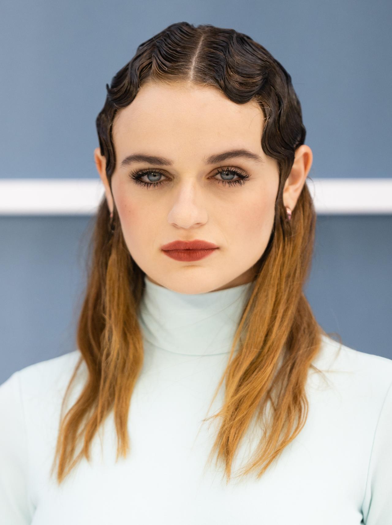 レトロなフィンガーウェーブヘアに合わせ、ぱっちりとしたまつげを目立たせたドーリーメイクをお披露目したのは、イギリスのロンドンで行なわれた『ブレット・トレイン』のプレミア。上下のまつげを長く濃くメイクし、元々目ヂカラのあるジョーイの目元をさらに強調。