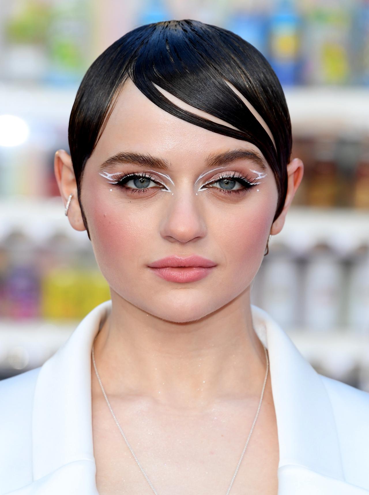 アメリカのロサンゼルスで行なわれた『ブレット・トレイン』のプレミアでは、どことなくフューチャリスティックなムード漂うメイクを披露したジョーイ。ホワイトのアイライナーでトライバル模様のようなラインを描き、ちょっぴり個性派なアイメイクに。
