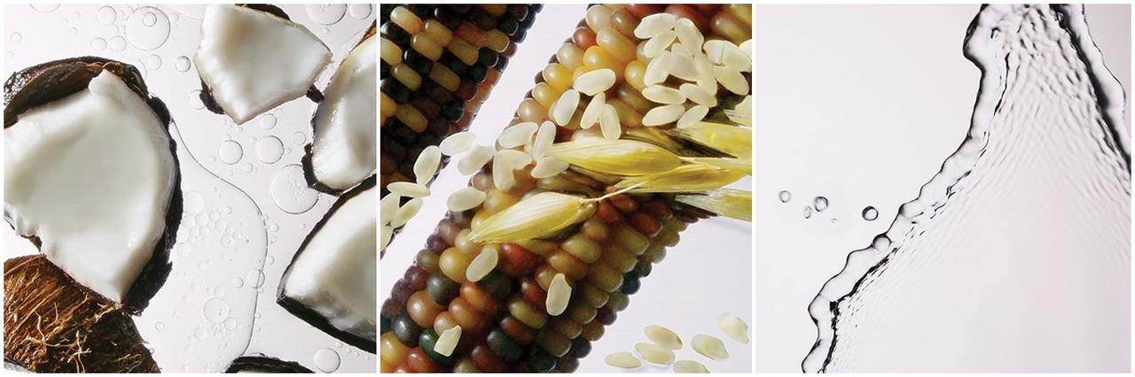 コーン※2やライス※3などの自然界由来成分(毛髪保護成分)が髪表面の褪色要因に“マグネット”のようにアプローチ。さらにココナッツ※4とコーン※5由来の成分が、髪表面をシールドし、毛髪内に水分が浸透しないようにすることで、ヘアカラー成分の流出を最小限に抑えてくれる。