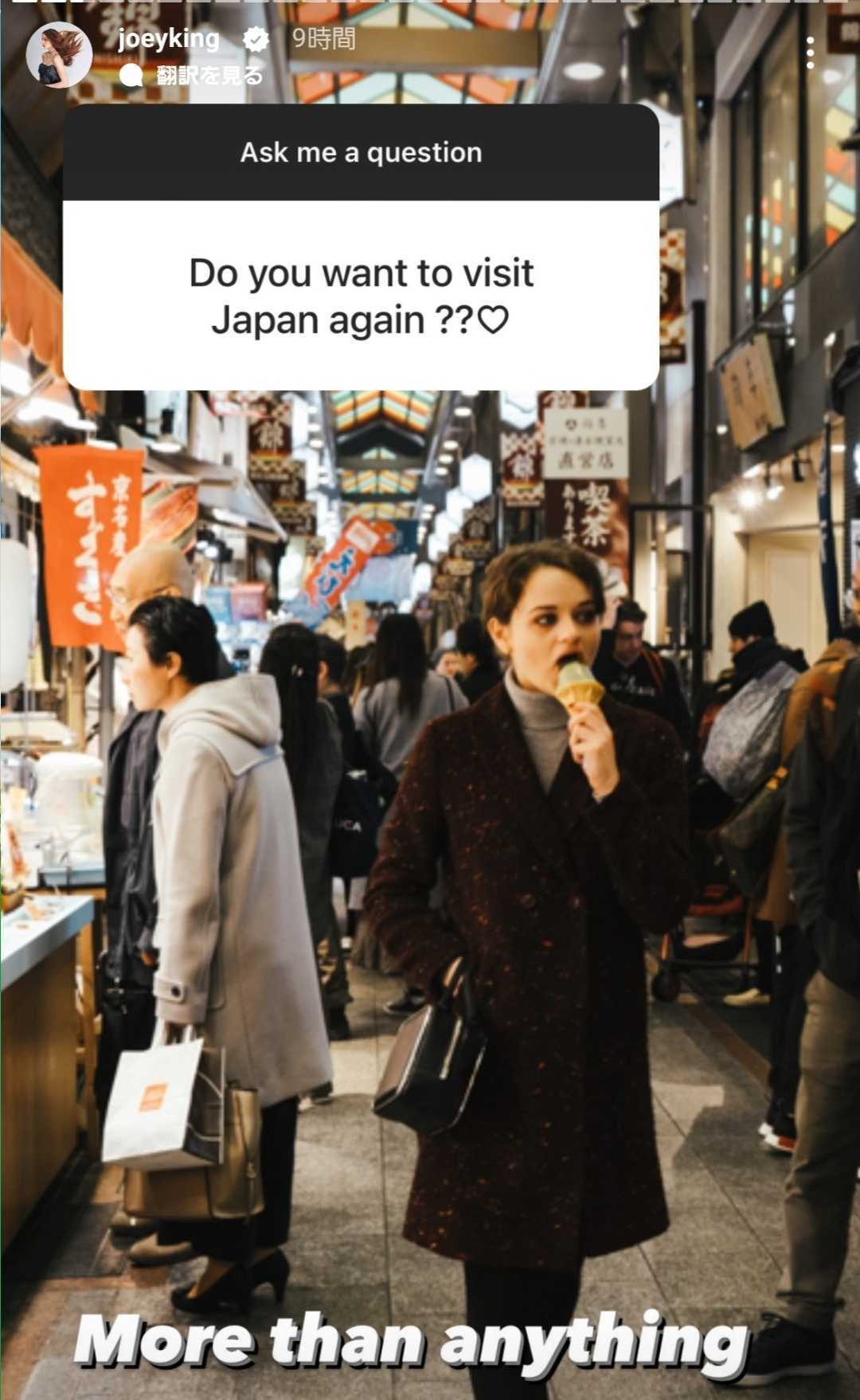 そして今回、ジョーイは自身のインスタグラムで質問コーナーを開催。その際、ファンから「日本をもう1度訪れたい?」との質問に、日本で撮影した写真をつけ「なによりも行きたい」と答え、日本行きを切望した。