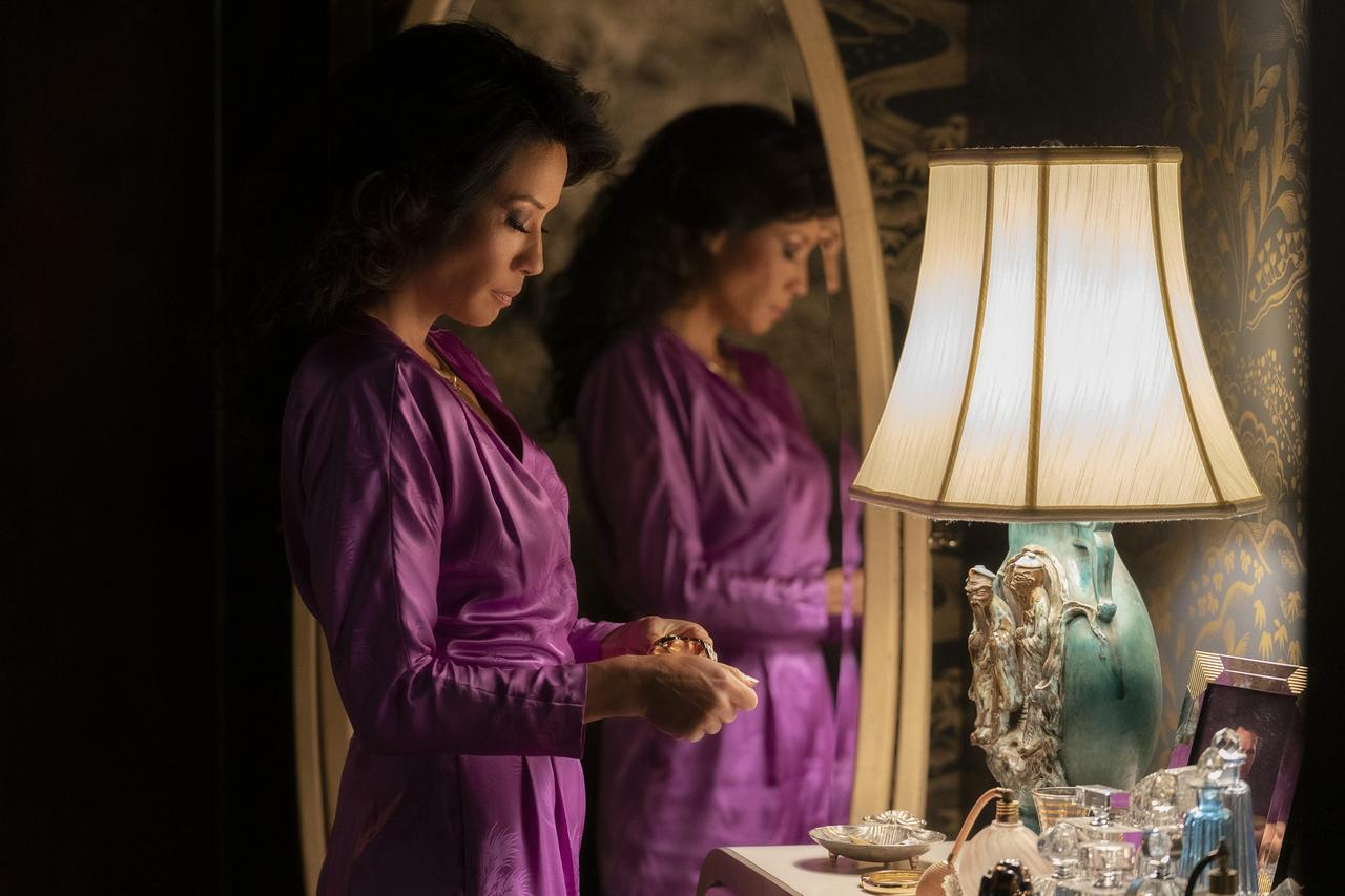 3時代に分かれて同じカリフォルニアの豪邸で暮らす3人の女性の中でも、その豪華絢爛な生活ぶりは群を抜いているシモーヌ。彼女が身に纏う、ゴージャスでヴィヴィッドな80年代ファッションも本作の大きな見どころ。⾐装はエミー賞受賞歴のあるデザイナー、ジャニー・ブライアントが担当しており、このたび解禁となった場面写真では、そんな彼女の煌びやかな衣装と暮らしぶりが映し出されている。
