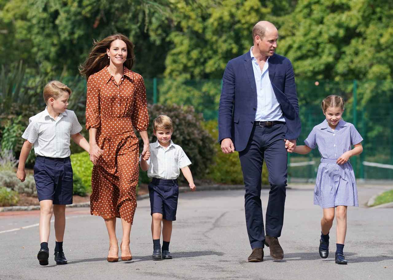 現地時間9月7日、転校先のラムルック・スクールに挨拶に訪れたウィリアム王子とキャサリン妃、ジョージ王子、シャーロット王女、ルイ王子。