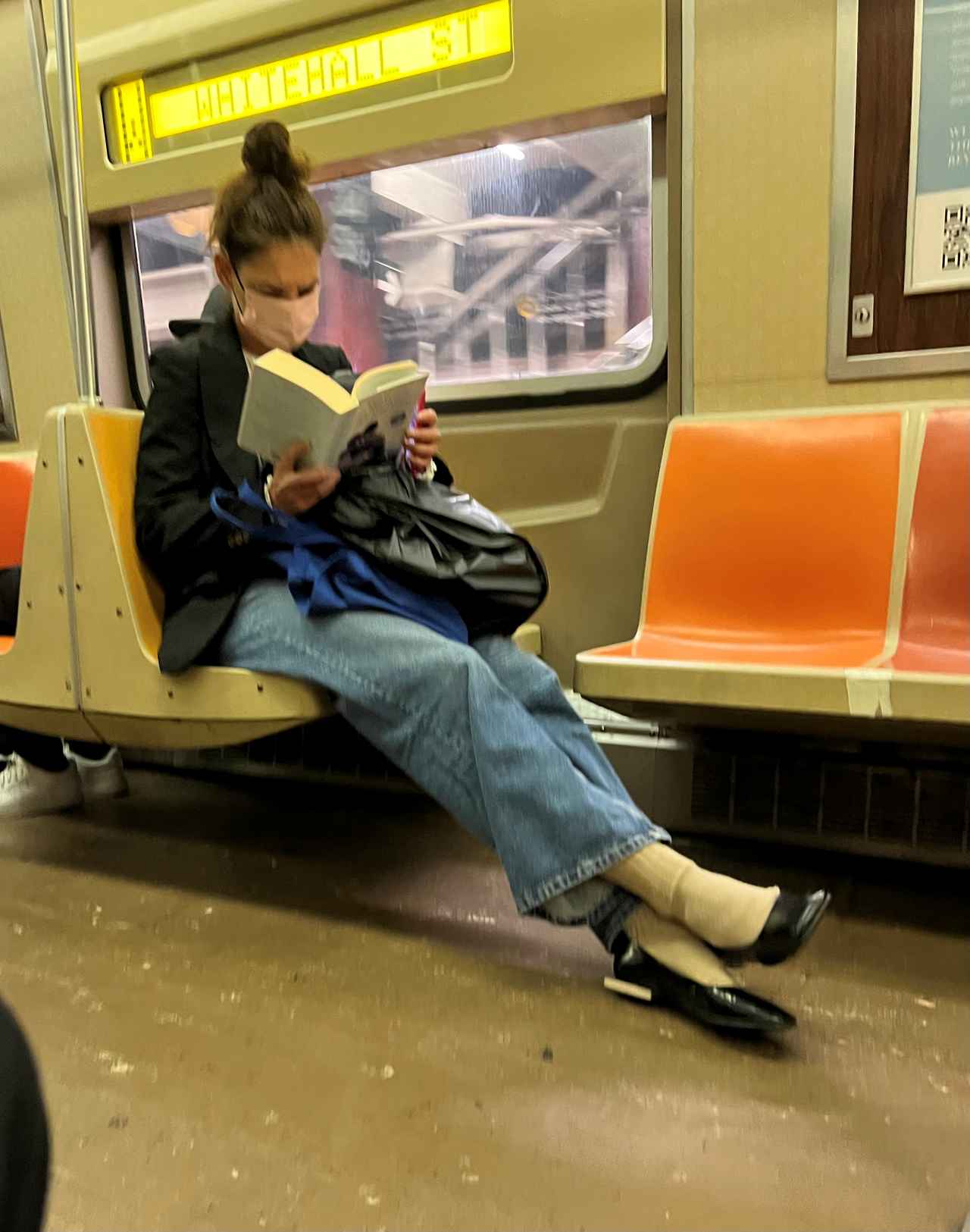 先日、1人の女性が電車で電話をかけ、その後は本に夢中になっている様子が目撃された。デニムジーンズに黒いジャケット、手には2袋の荷物を持ったカジュアルな装いの女性は、ピンク色のマスクをしているために顔が分かりづらい。