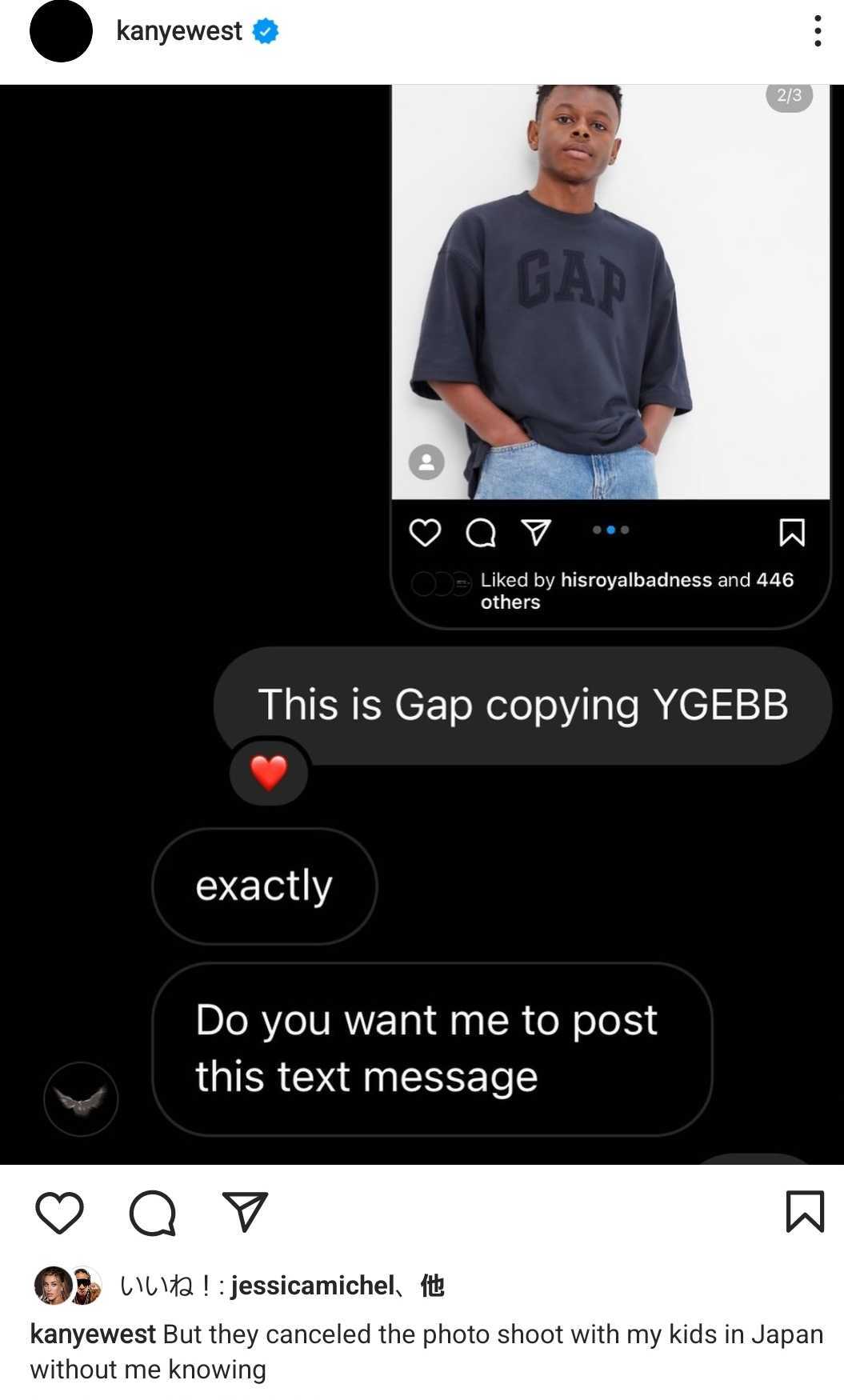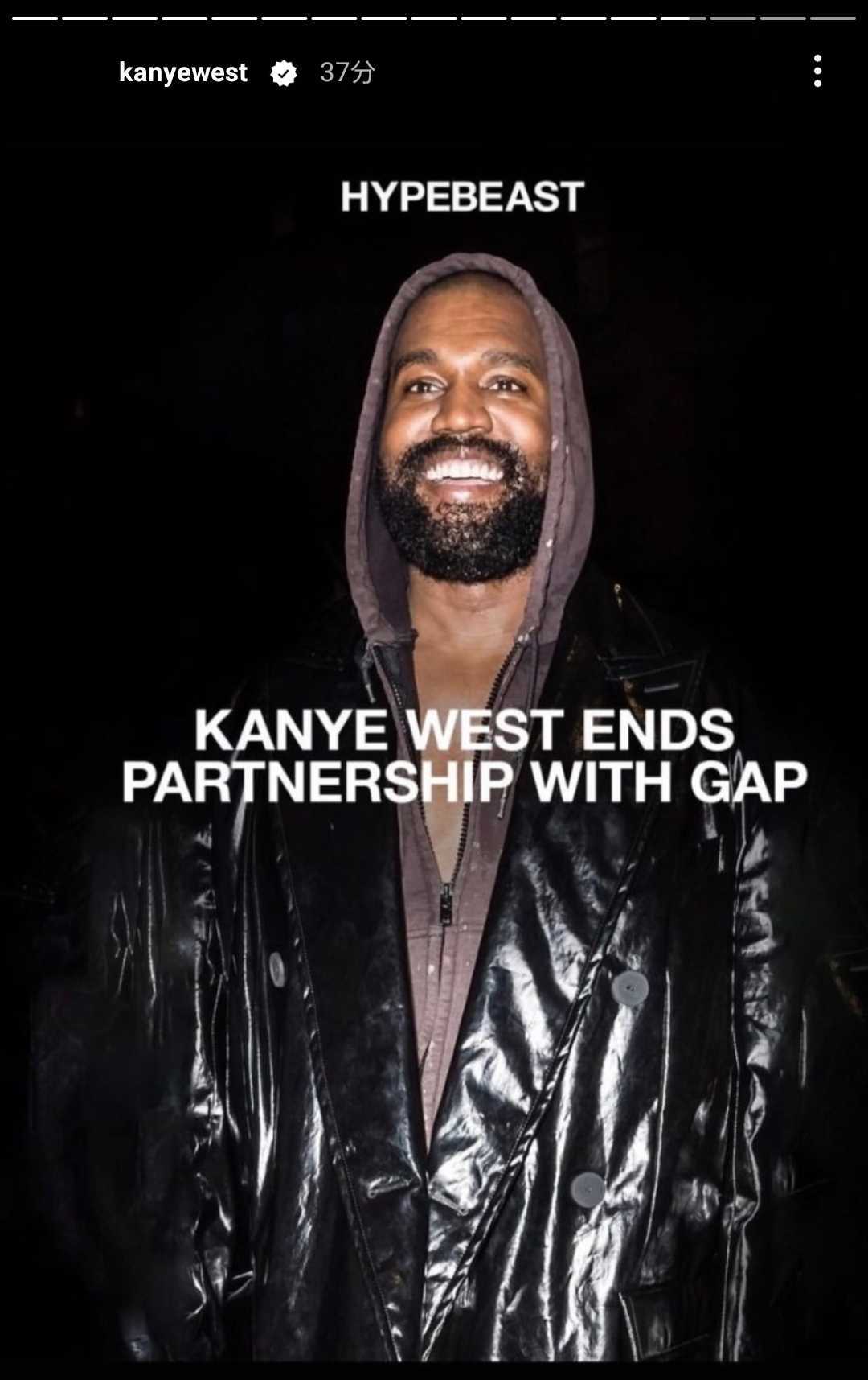 カニエも自身のインスタグラムで、GAPと契約破棄をすることを認めており、パートナーシップ終了を伝えるニュースのキャプチャー写真をストーリーズに投稿。