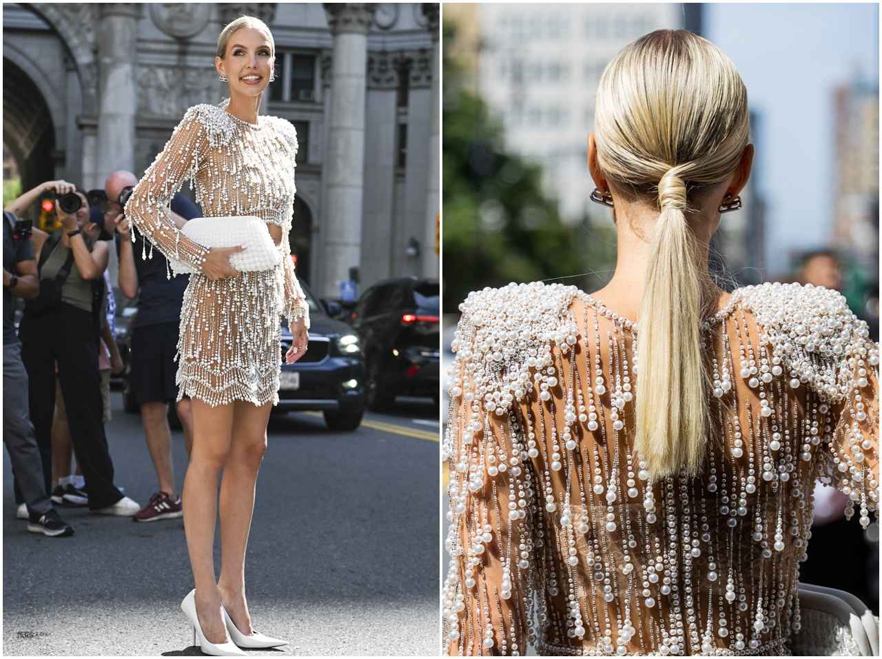 ドイツ出身のインフルエンサーであり、ファッションウィークの常連であるレオニー・ハンネは、今回のNYFWでも連日さまざまなブランドのショーに出席。タイトなまとめ髪のレパートリーが豊富なレオニーは、360度どこから見てもオシャレなアレンジを複数披露した。