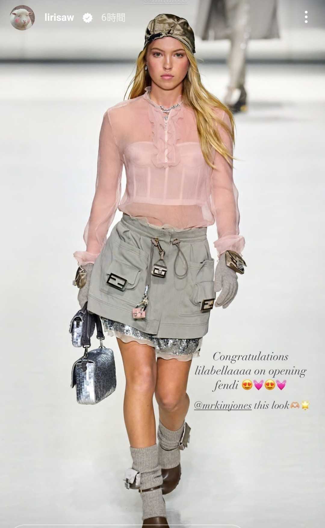 ライラがオープニングを飾ったこの記念すべきショーは、俳優のジュード・ロウの子どもで俳優やモデルとして活動するアイリス・ロウも見ていたようで、「ライラベラ(ライラの愛称)、フェンディのオープニングおめでとう」とインスタグラムで祝福のメッセージを送った。