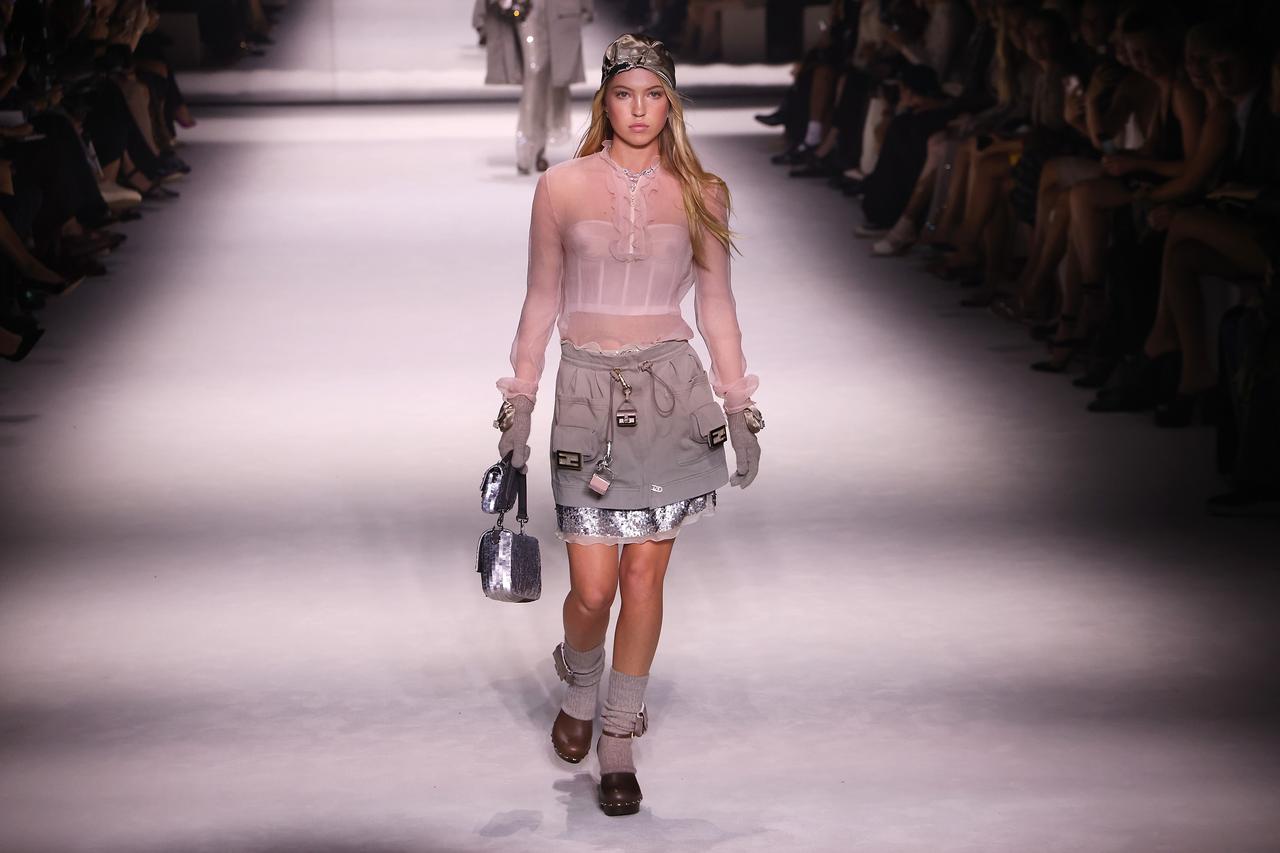 ライラはコルセットの上からペールピンクのチュールトップスを着用し、グレーのスカートを合わせたスタイルで登場し堂々とウォーキング。のちに自身のインスタグラムで「バゲットに覆われたフェンディのオープニング…。感謝の気持ちでいっぱいです!!!私を起用してくれてありがとうございます」と感謝。