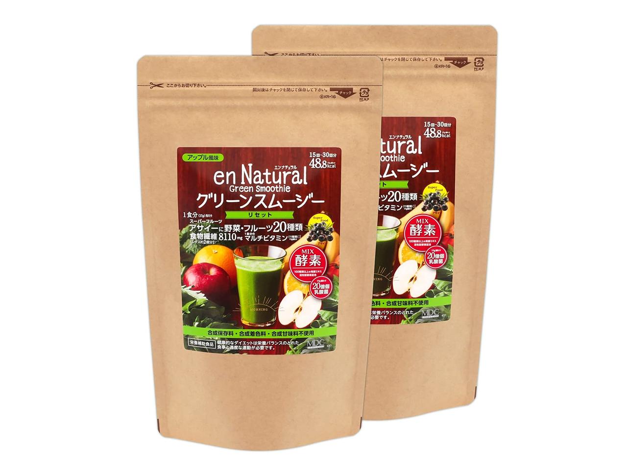 スムージーは、毎日の食事を簡単にヘルシーにしてくれる。en Natural(エンナチュラル)の「グリーンスムージー」なら、シェーカーいらずで水と混ぜるだけでつくれて、忙しい朝にもぴったり。もよぎや生姜など厳選した野草・和漢植物100種類以上を組み合わせ、酵母菌、乳酸菌、麹菌を使用して発酵させた野草入り植物発酵エキスに活性型酵素をプラス。レタス約2個分相当の食物繊維と11種類のマルチビタミン配合で、ダイエット中の栄養補給にもピッタリ。