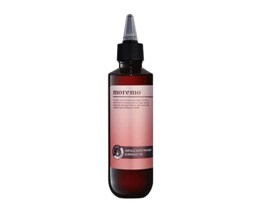 ウォータートリートメントの人気の火付け役と言われているのが、moremo(モレモ)。ブランドの看板アイテム「ウォータートリートメントミラクル10」のアップグレード版である「アンプルウォータートリートメントミラクル100」は、ダメージケアだけでなく頭皮ケアもできる優秀なアイテム。100秒間のディープケアで、さらさらの髪に近づく。