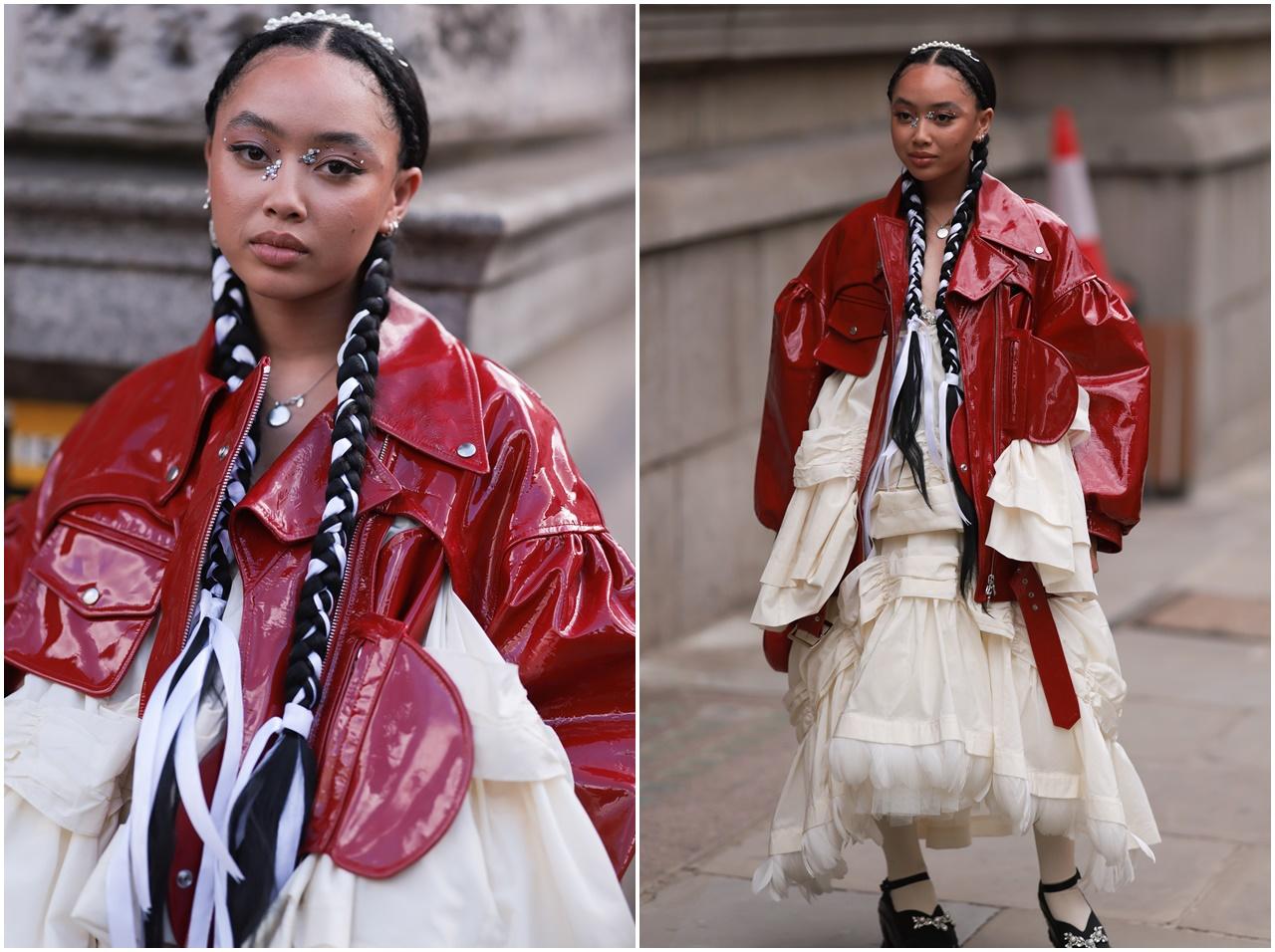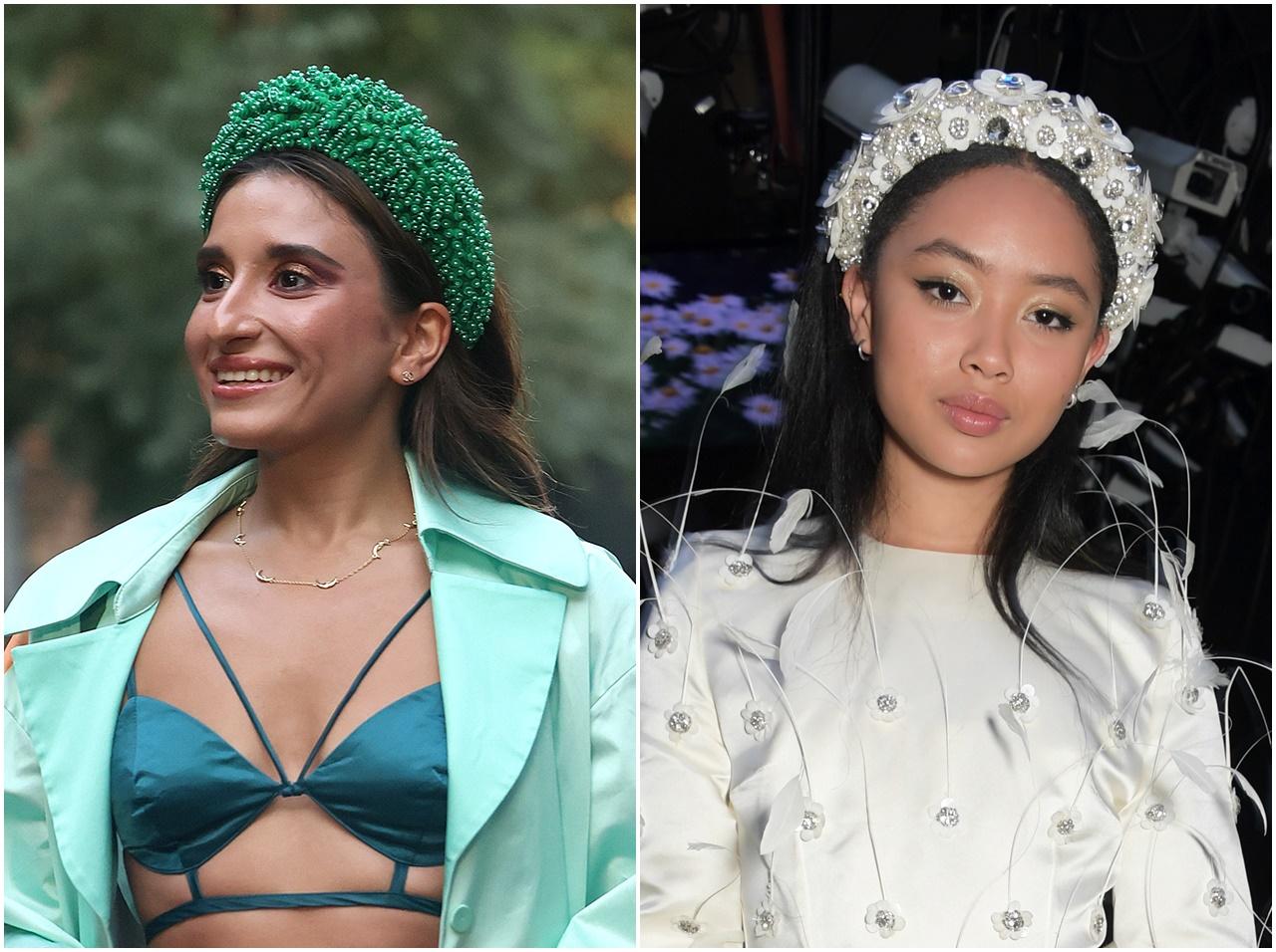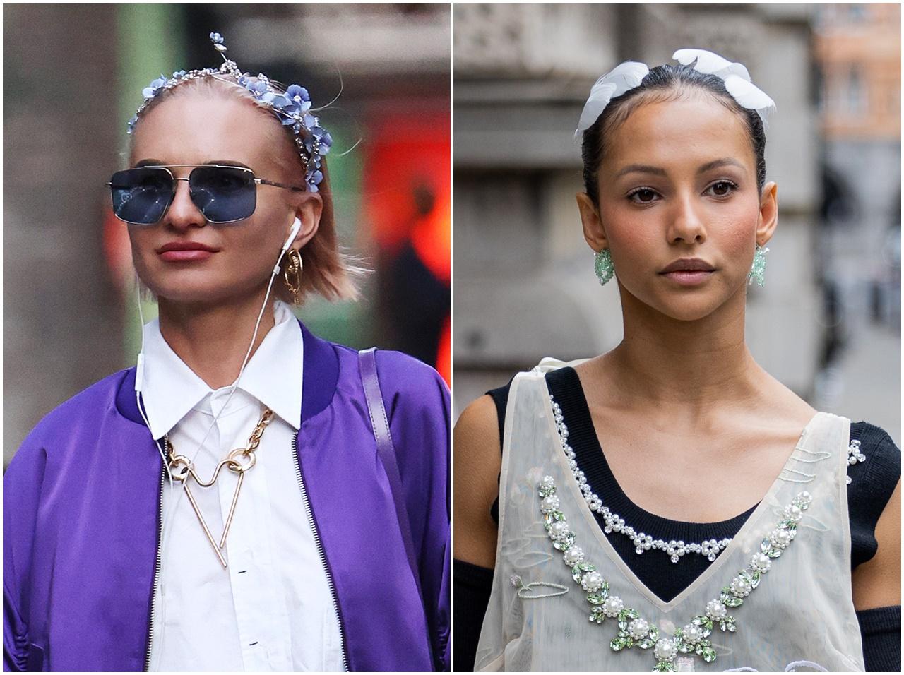 デコラティブなカチューシャなどのヘッドピースは、2023SSのロンドン・ファッション・ウィークで多くのファッショニスタが取り入れたアイテム。ビーズやスパンコール、パールがあしらわれた主役級のアクセで、視線を頭に集中させた。