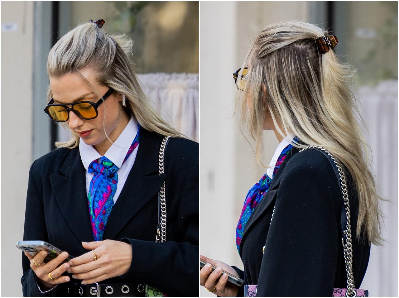 こなれ感抜群のファッションが目立ったロンドン・ファッション・ウィークでは、ヘアクリップでつくるゆるめのアップヘアも人気。つくり込みすぎることなく、後ろ姿もオシャレに見せた。