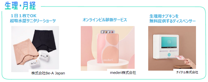 今回が第1回となる「FemtechTokyo」に出展するのは、日本最大※1となる200社※2のフェムテック・フェムケア製品。超吸水型サニタリーショーツを展開する株式会社Be-A Japanや、オンラインピル診療サービスのmederi株式会社、生理用ナプキンを無料提供するディスペンサーを展開するオイテル株式会社など、女性のライフステージに合わせた「健康」と「活躍」を支援する数々の企業が出展する。