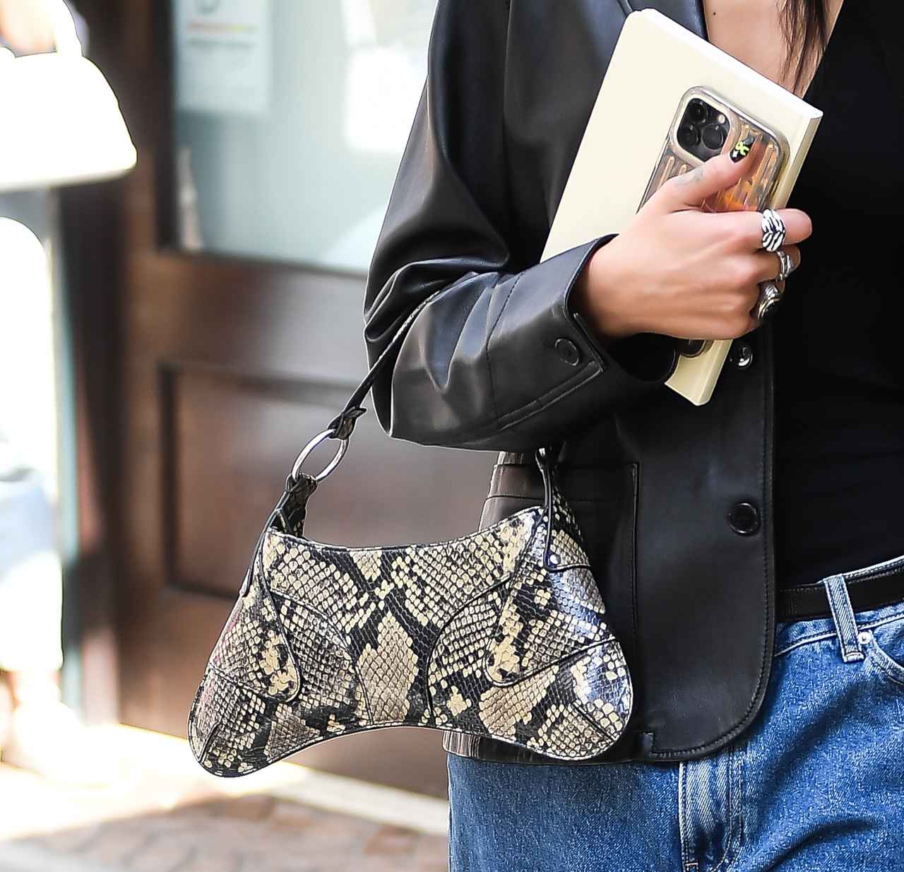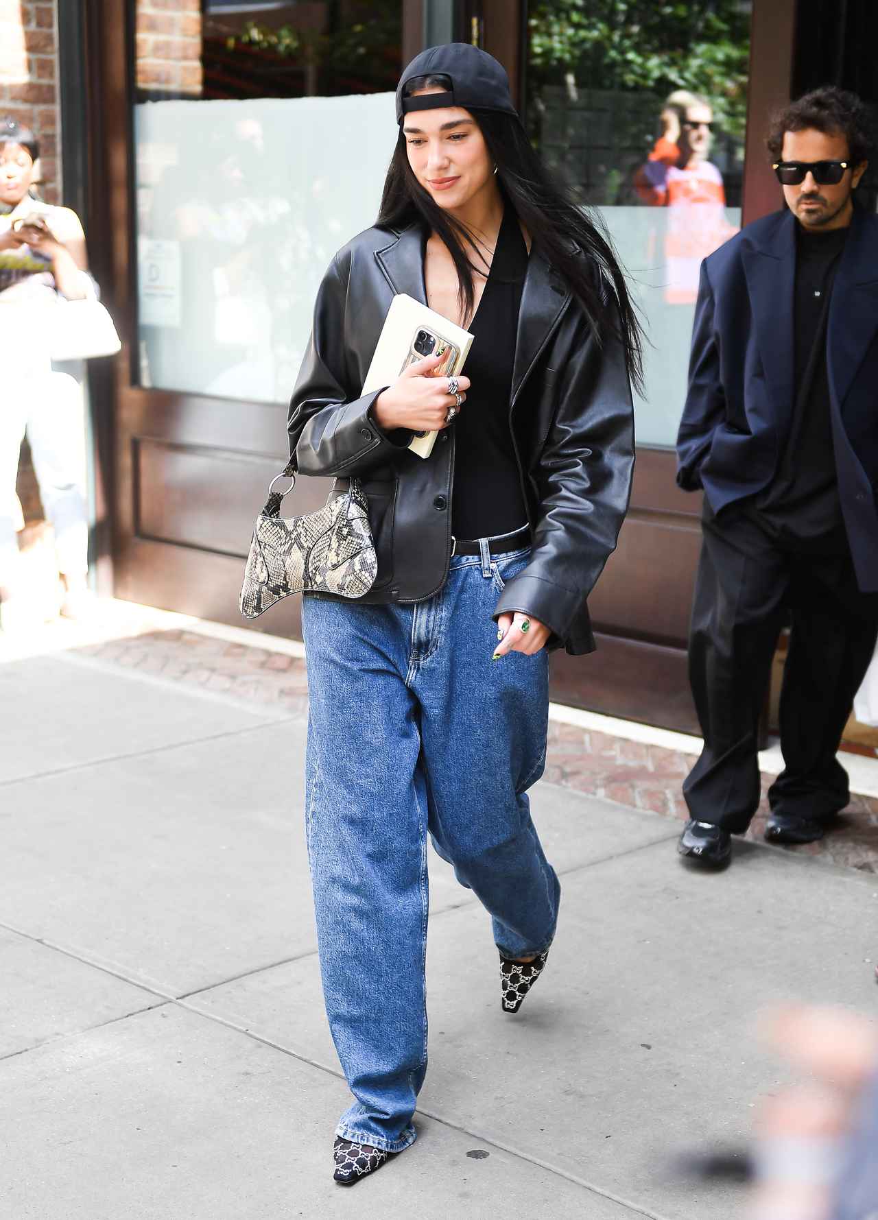 オシャレに定評のあるデュア・リパは、秋もファッションを満喫。どんなコーデでも様になるデュアは、今回、80年代風のオーバーサイズアイテムを使ったコーデを披露。トップスはホルターネックのインナーにオーバーサイズのレザージャケットを羽織り、胸元を大胆に肌見せしたバランスが新鮮。そして極太シルエットのウォッシュドデニムで80年代っぽさを加速させた。