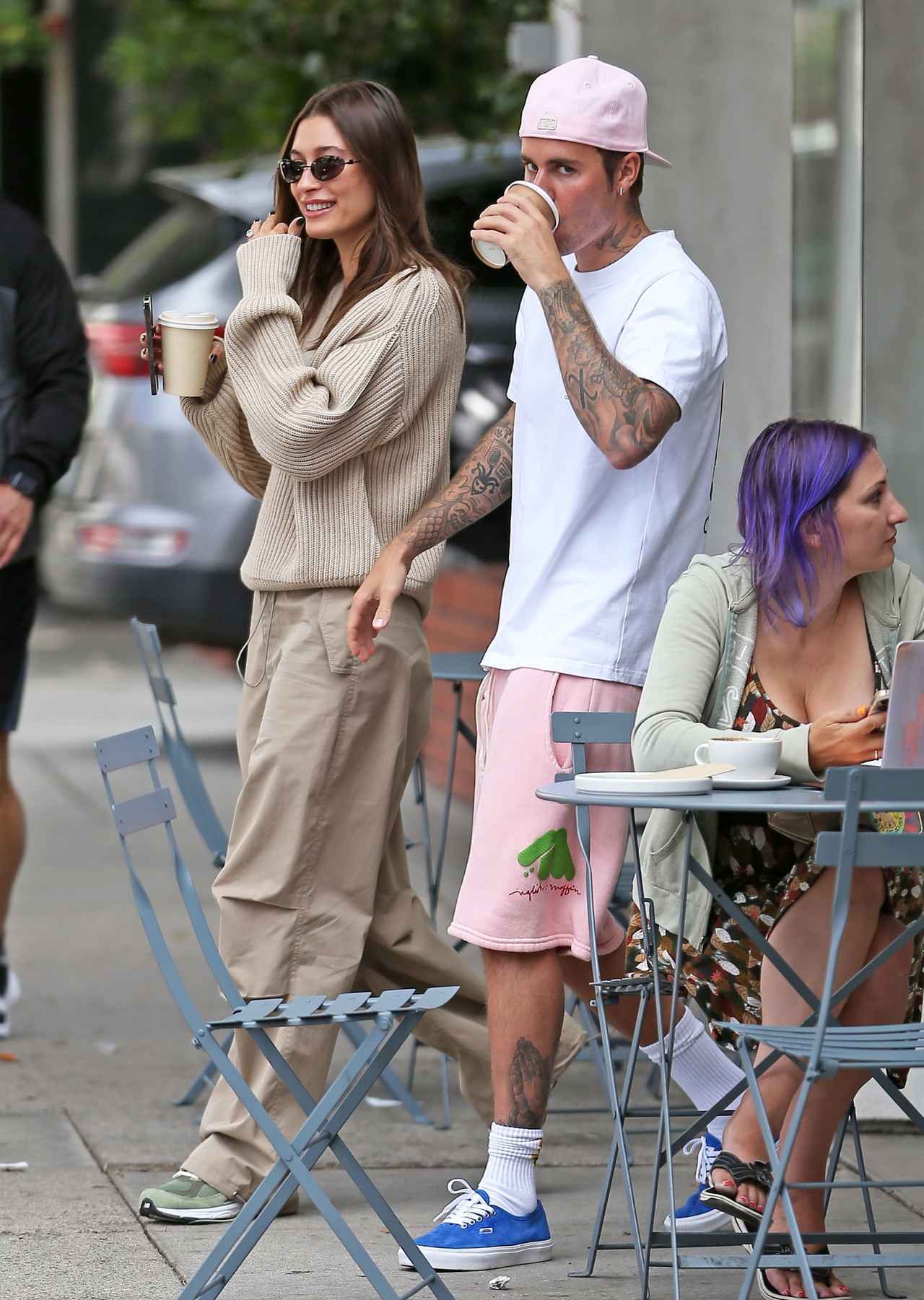 シンガーのジャスティン・ビーバーと妻でモデルのヘイリー・ビーバーが、ビバリーヒルズにあるカフェから出てくるところをカメラがとらえた。