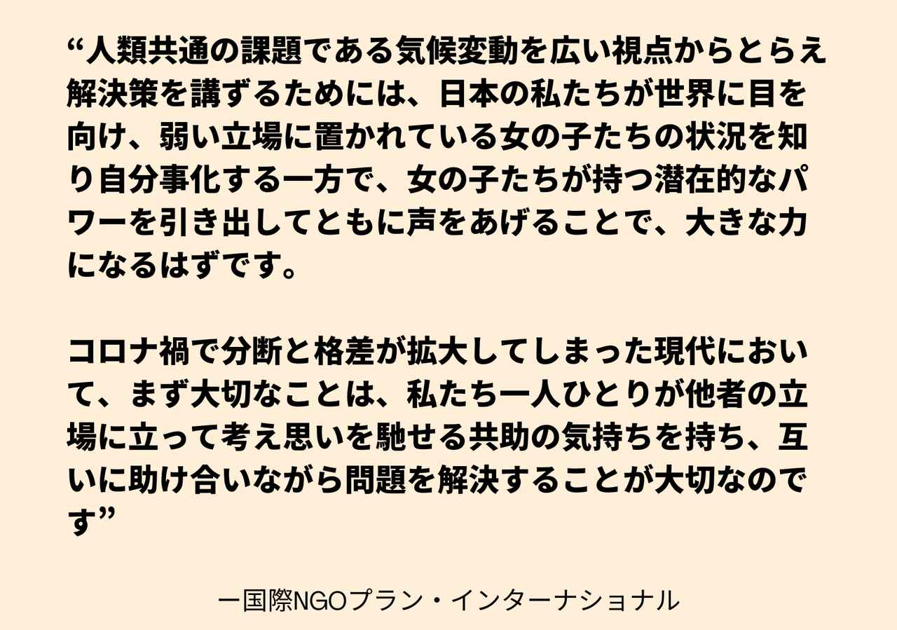 気候変動と聞いて何をイメージする? 溶けた氷河。そのうえに立つシロクマ。山火事から逃れたコアラ。干上がったダムや湖…。では、“結婚させられる12~13歳の女の子”はどうだろうか?