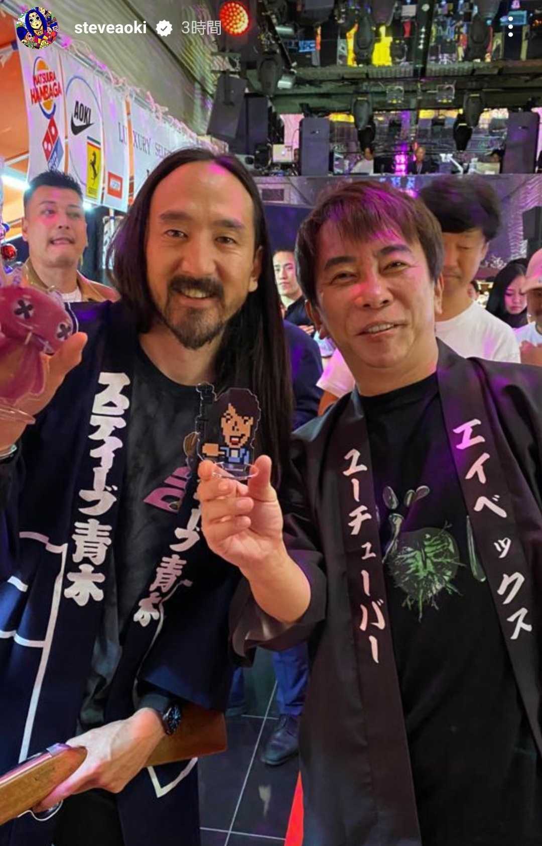 そんなスティーヴは、以前から親交のあるエイベックス株式会社代表取締役会長の松浦勝人氏とも日本で対面。スティーヴは松浦会長と銀座 鮨 あらいを訪れ、美味しい寿司に舌鼓を打つだけでなく、日本のお祭り風のクラブイベントにも出席。「スティーヴ青木」と描かれた法被までもらい、最大級のおもてなしをしてもらったスティーヴはかなりご満悦の様子だった。