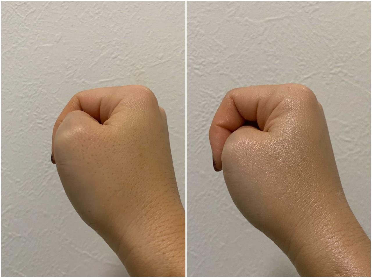 小鼻やおでこがテカリやすく、汗っかきなエディターにとっては、その崩れにくさも語らずにはいられないポイント。皮脂を吸収する「エアー ポア パウダー※1」が配合され、それまでファンデの悩みだった化粧崩れをしっかり防止してくれた。