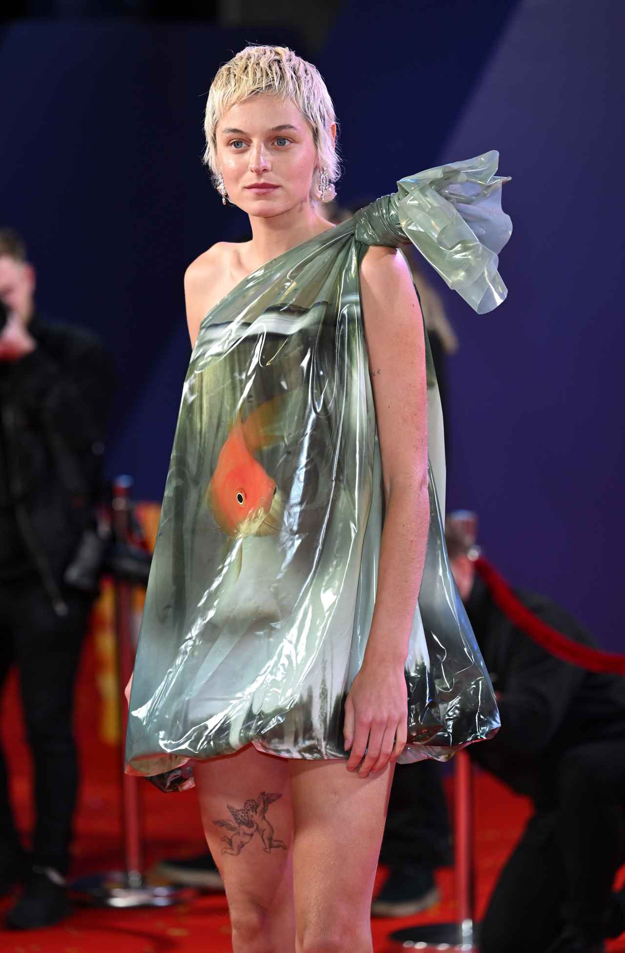 俳優のエマ・コリンが、BFI London Film Festivalに出席。そこで着ていたドレスは、“金魚ドレス”だった。(フロントロウ編集部)
