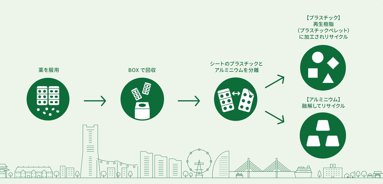 そんな「おくすりシート」がリサイクル資源であることの認知を高め、資源として循環する仕組みを確立するため、「SDGs未来都市」として先導的な取り組みを行う横浜市で実証実験が開始されることになった。