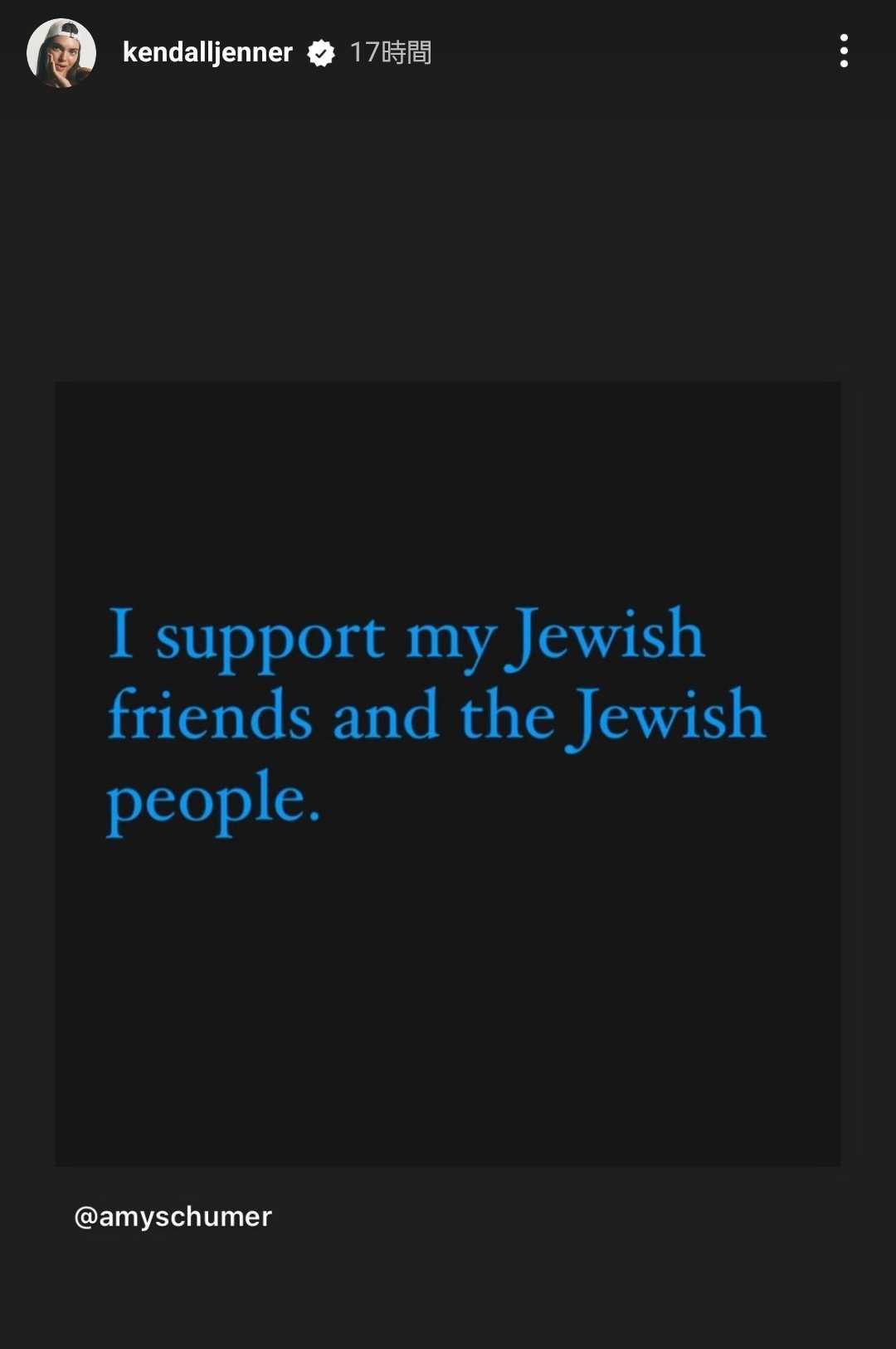 その他にも、キム以外のカーダシアン家のクリス・ジェンナーを筆頭に、ケンダル・ジェンナーやカイリー・ジェンナーらが「私は、自分のユダヤ人の友人たちとユダヤ人を応援しています」というメッセージをインスタグラムのストーリーズにアップした。
