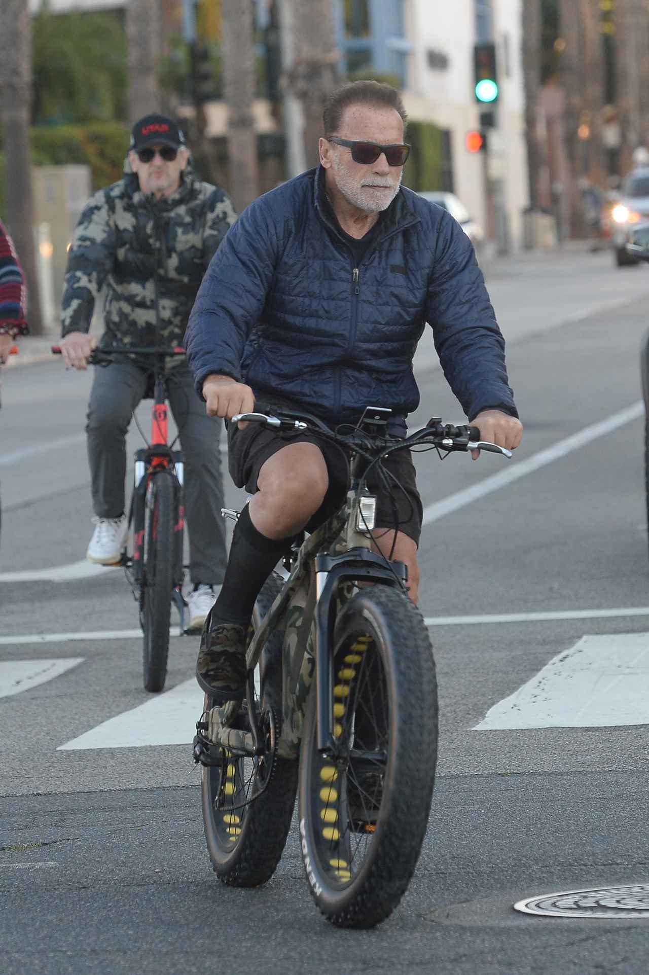 映画『ターミネーター』シリーズのT-800役でおなじみのアーノルド・シュワルツェネッガーが“イカつい自転車”に乗ってジムへ向かうところをキャッチした。この自転車はアーノルドの愛車で、ジムに行くときはこれに乗っていくのがお決まり。