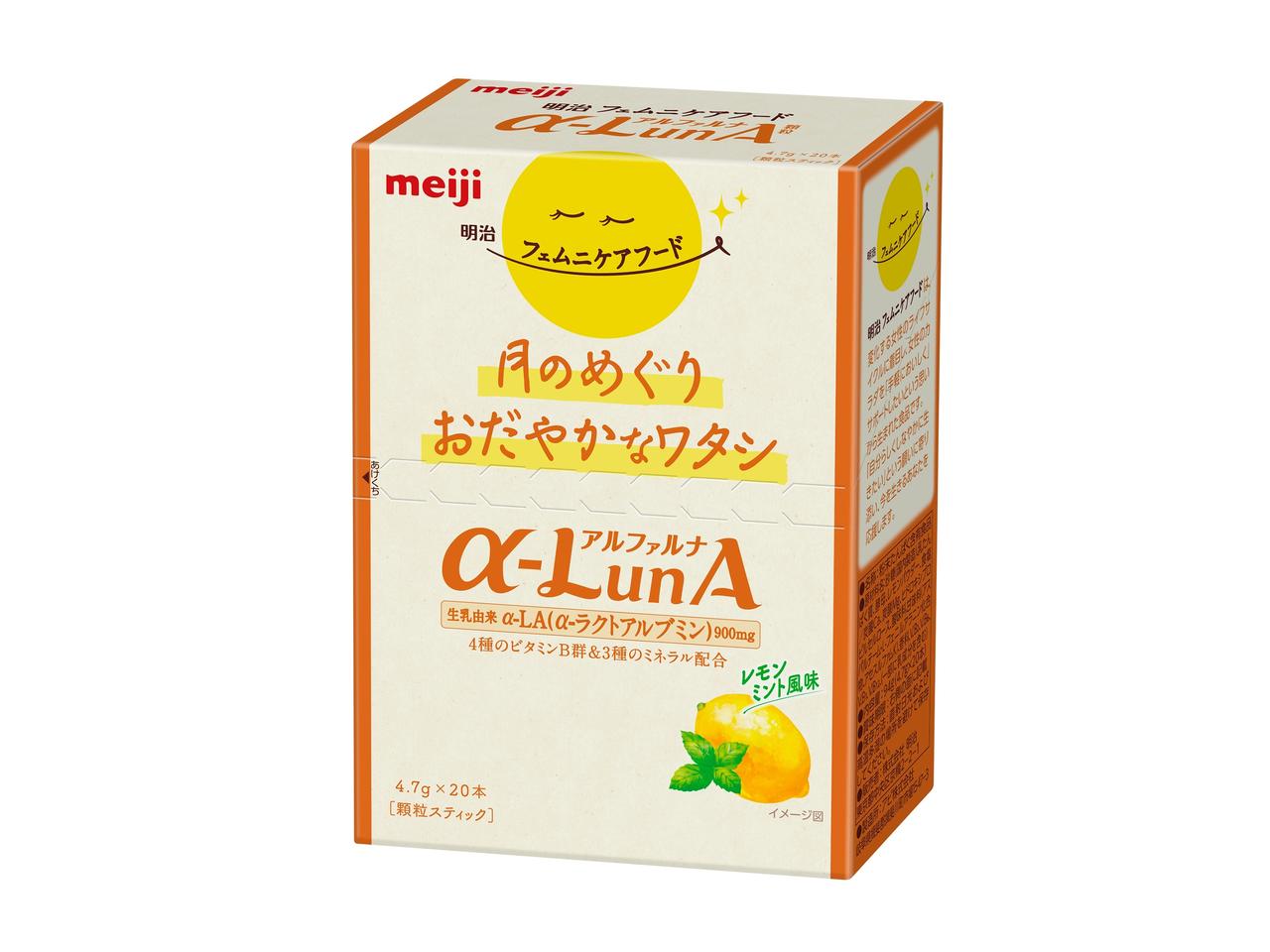明治 フェムニケアフード α-LunA顆粒 レモンミント風味 4.7g/包×20日分 3100円(税抜)