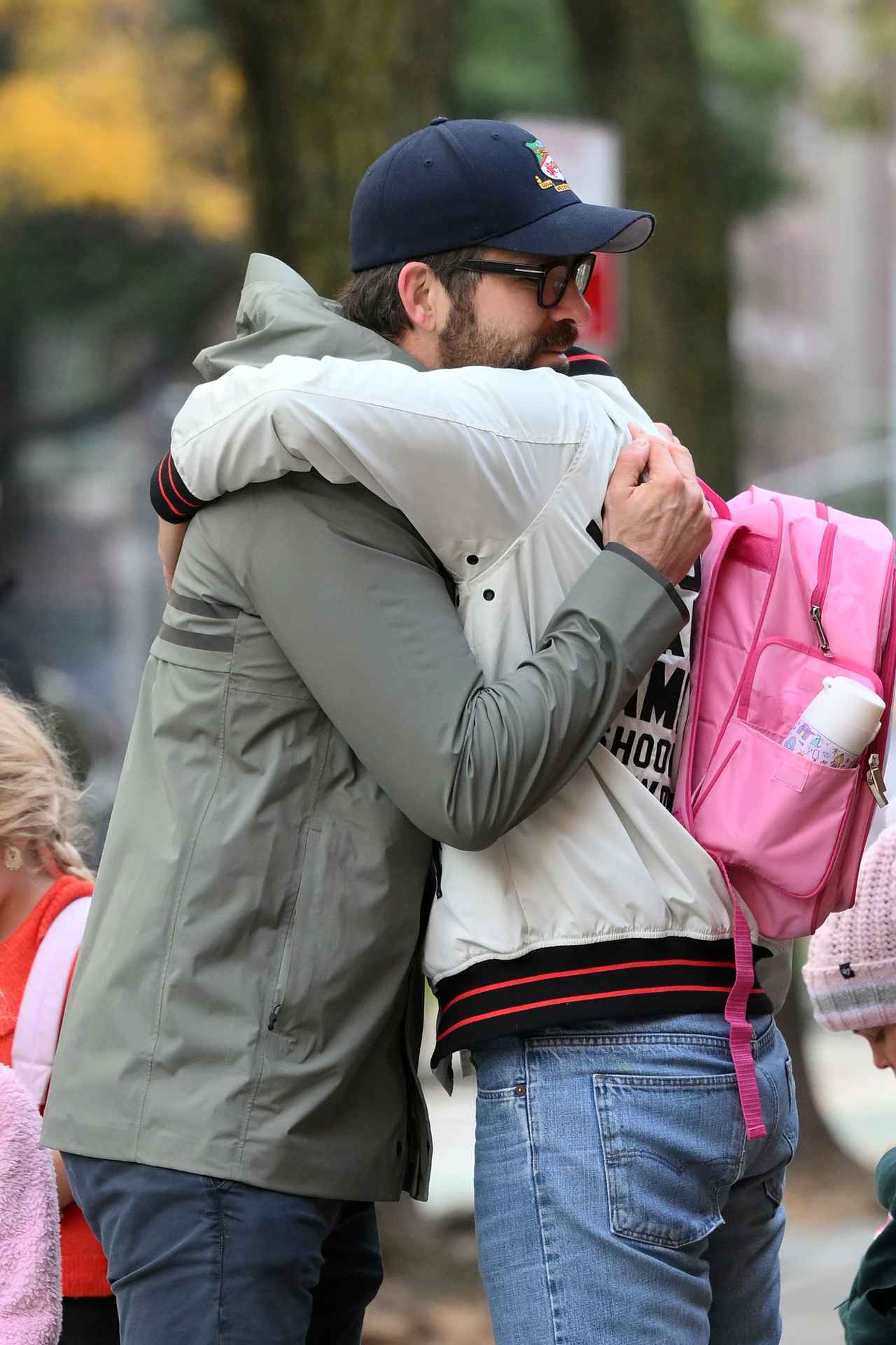 通勤や通学の人が足早に歩くニューヨークの街角でハグする2人の男性。よく見たらハリウッドスターたちだった。(フロントロウ編集部)