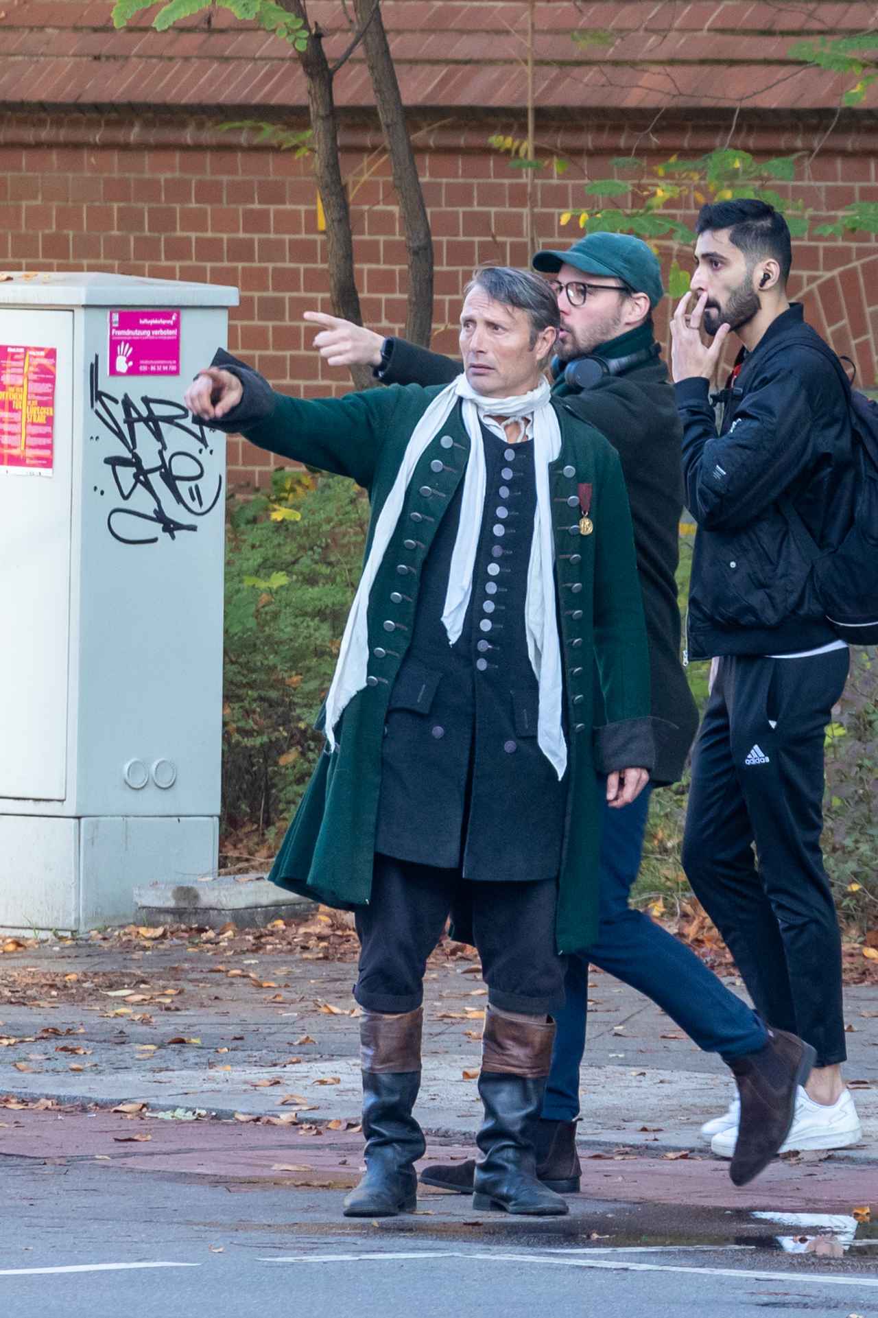 映画『ファンタスティック・ビースト』や『007 カジノ・ロワイヤル』などで知られるマッツ・ミケルセンの姿を、ドイツのベルリンでカメラが収めた。この日のマッツは、18世紀の衣服を着こなしていた。