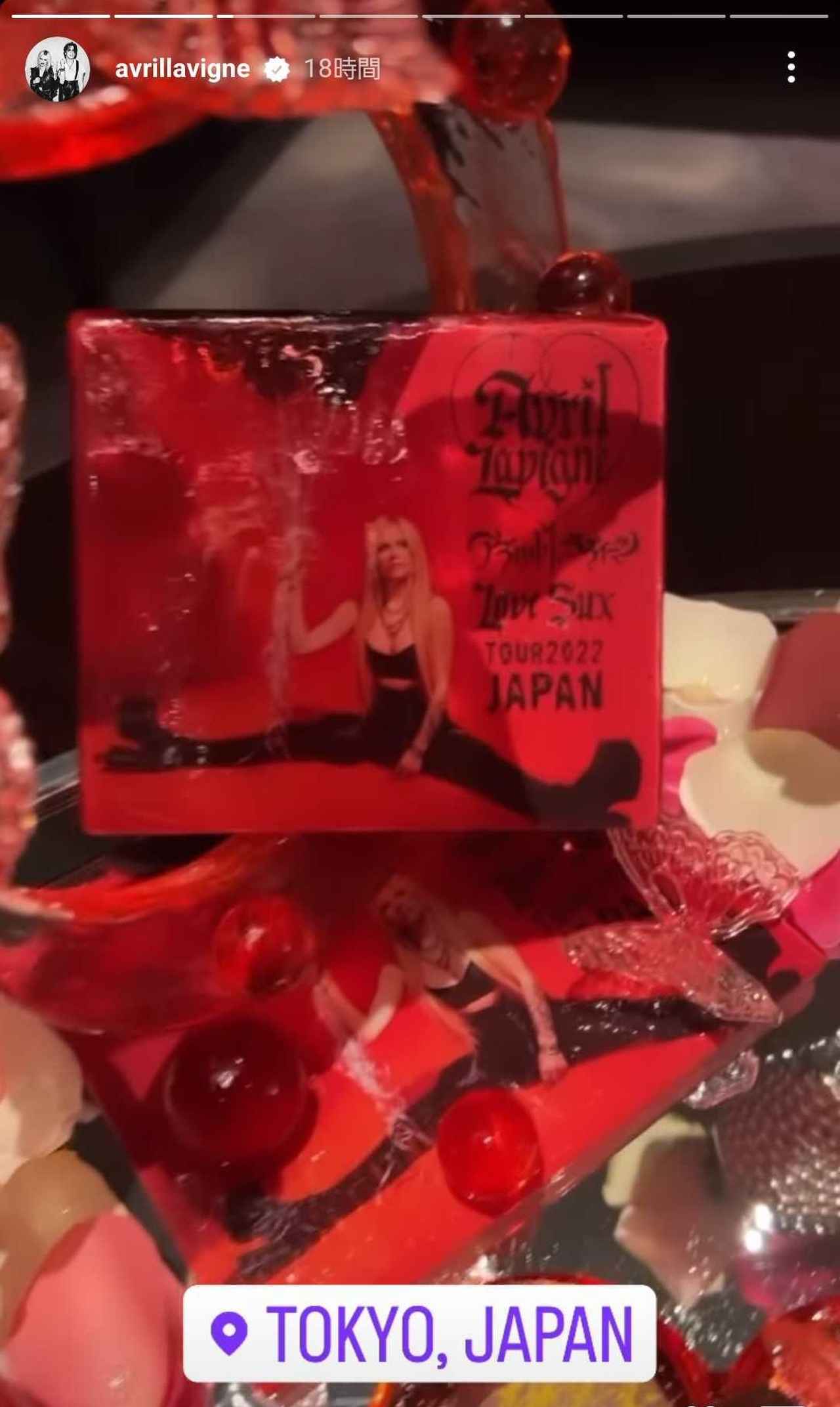 来日してからは日本の景色の投稿が多かったが、その中でアヴリルはスイーツの動画をアップ。これはホテル側がアヴリルのツアーを祝して作った記念プレート。そのおもてなしにアヴリルは感激したようで、飴細工やチョコなどで作られたプレートをじっくりと動画に収めて、それを約1,200万人のフォロワーに向けて発信。日本のおもてなし精神を世界のファンに紹介した。